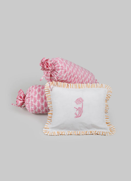 وسادة وبوالص للأطفال ميلا باللونين الأحمر والبيج - مجموعة من 3