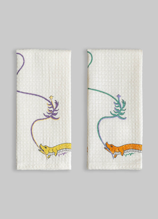 مناشف يد بنقشة التمساح الكامن - طقم من قطعتين