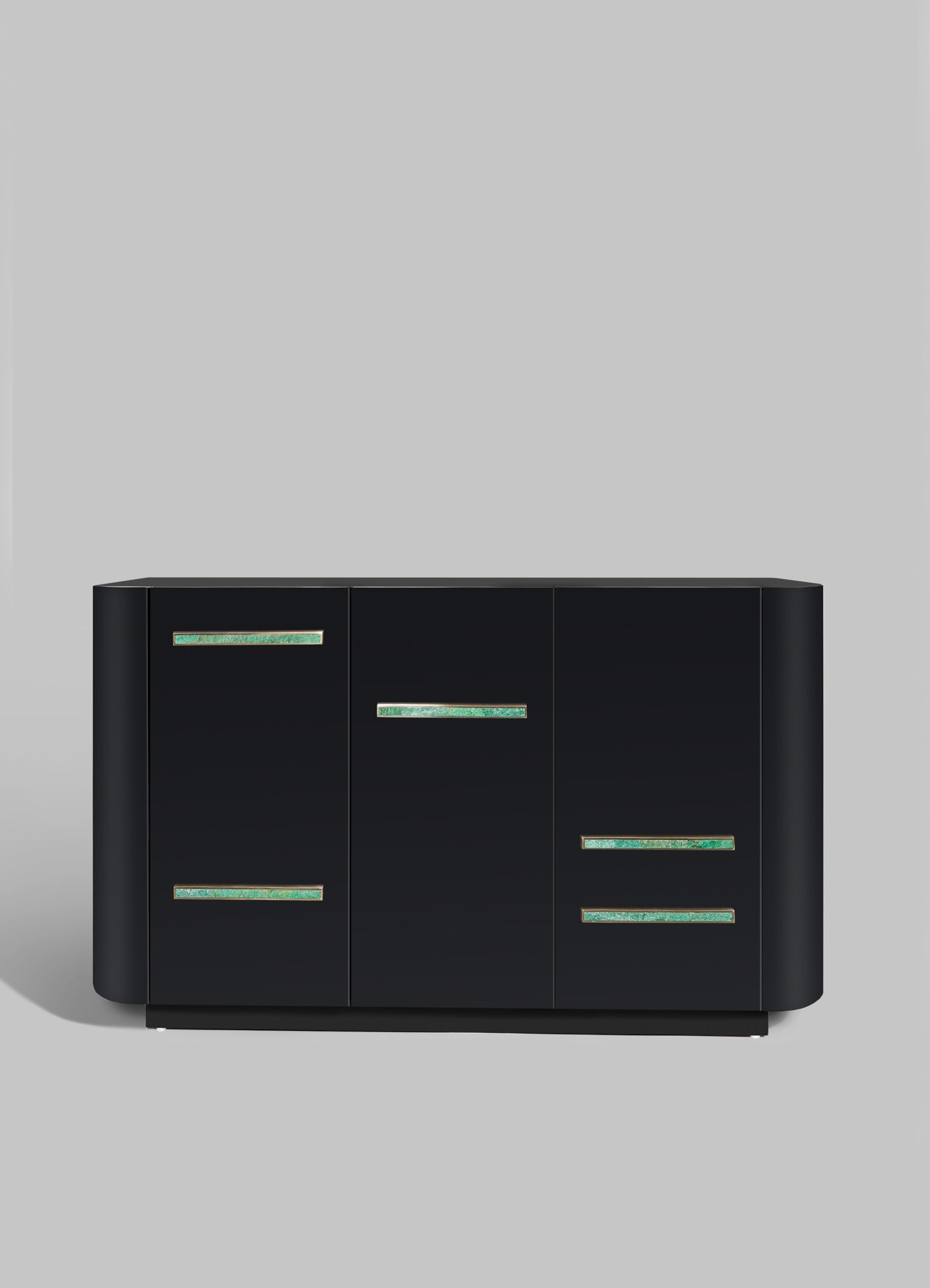 خزانة خشبية بحشوات شبه ثمينة. مصنوعة يدويًا في الهند.