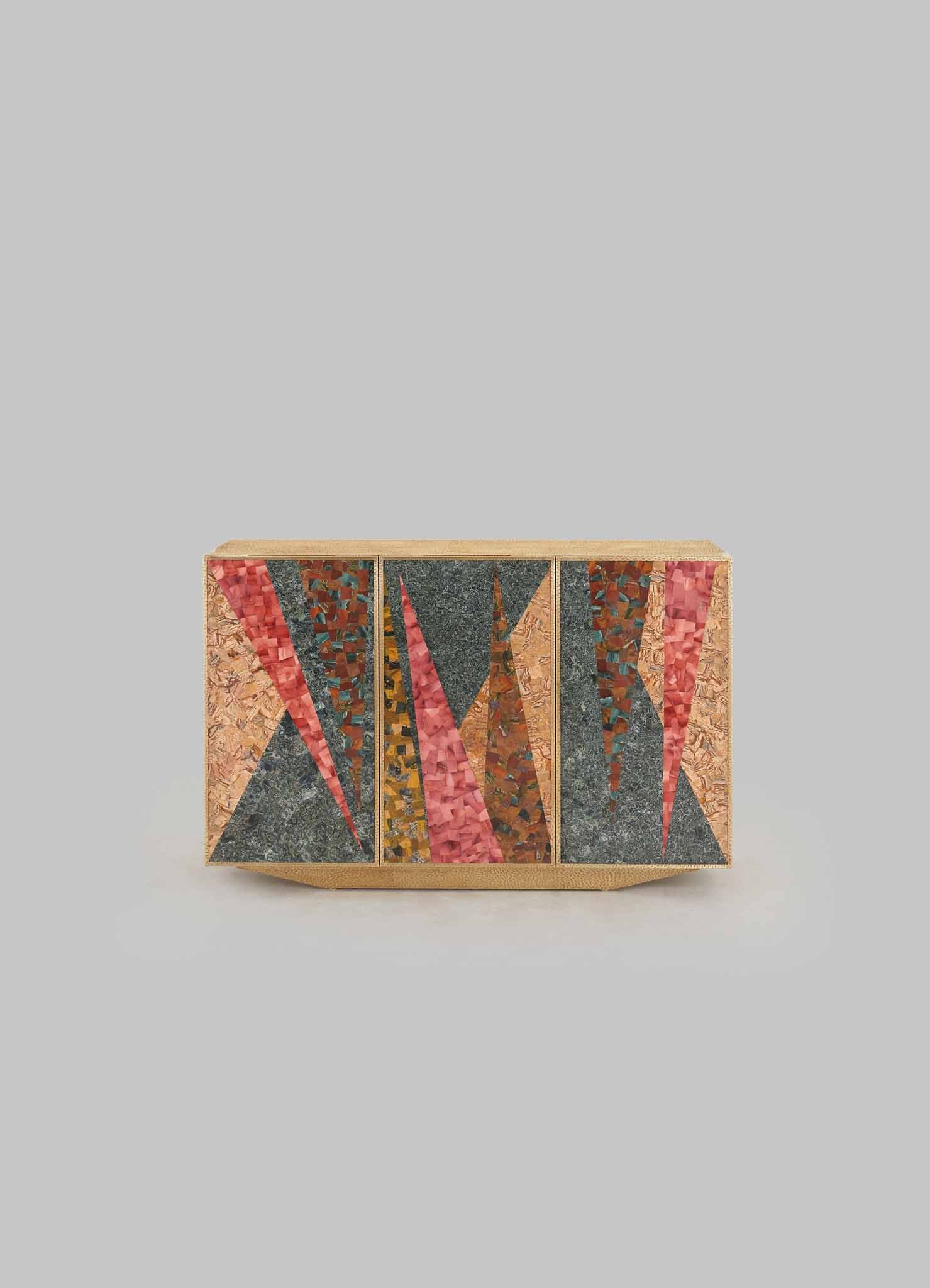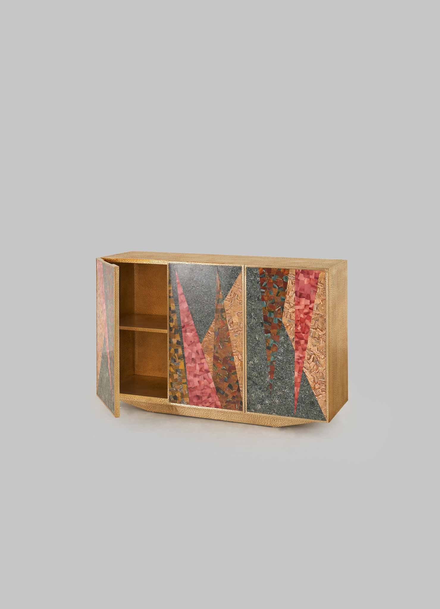 خزانة من النحاس مع حشوات شبه ثمينة. مصنوعة يدويًا في الهند.