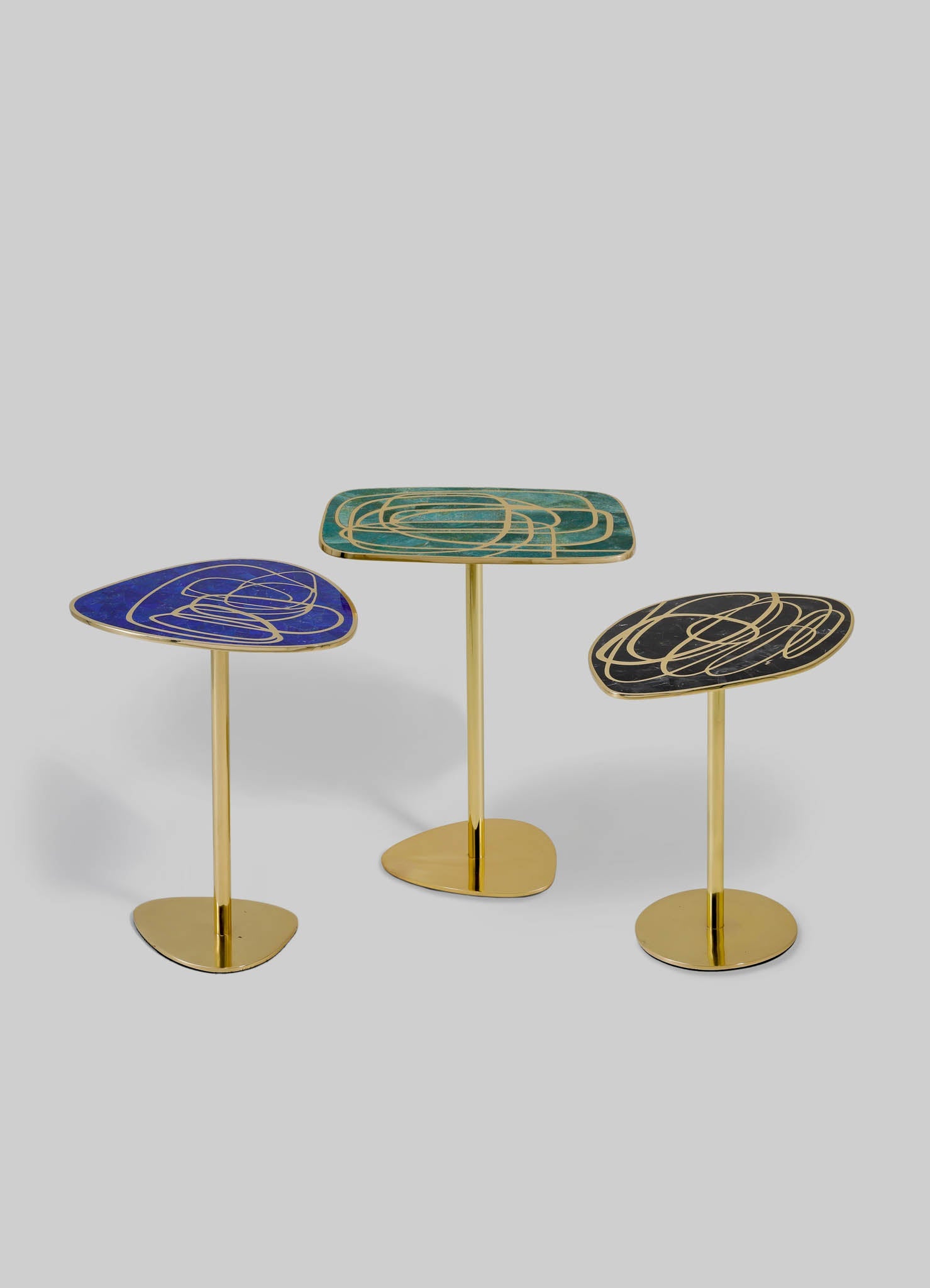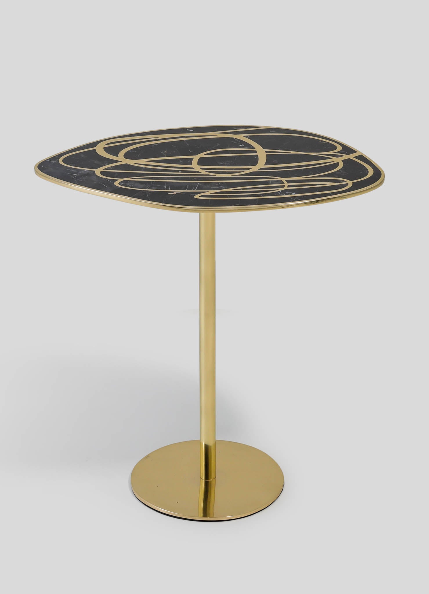 طاولة جانبية من النحاس مع حشوات شبه كريمة. مصنوعة يدويًا في الهند.