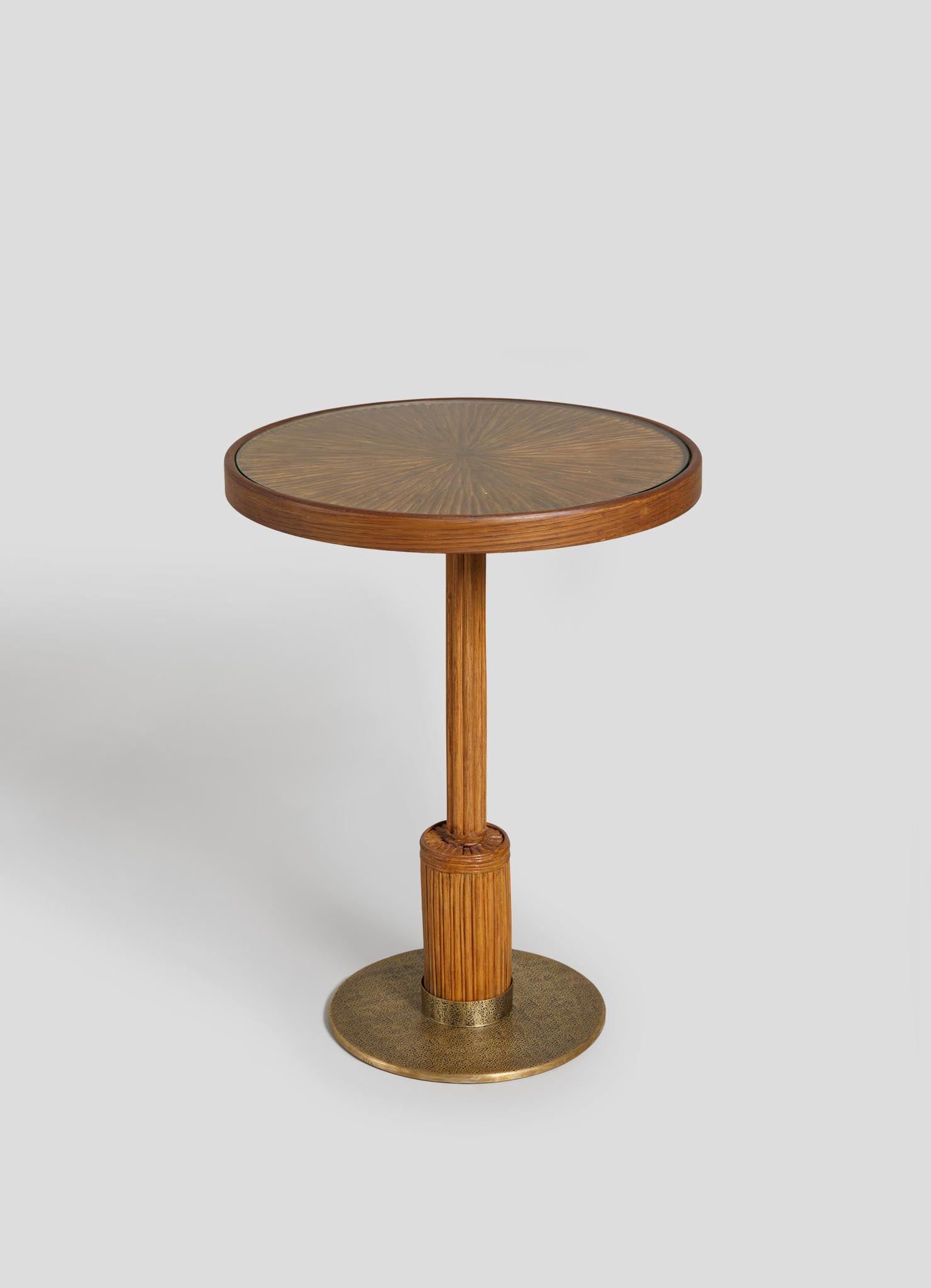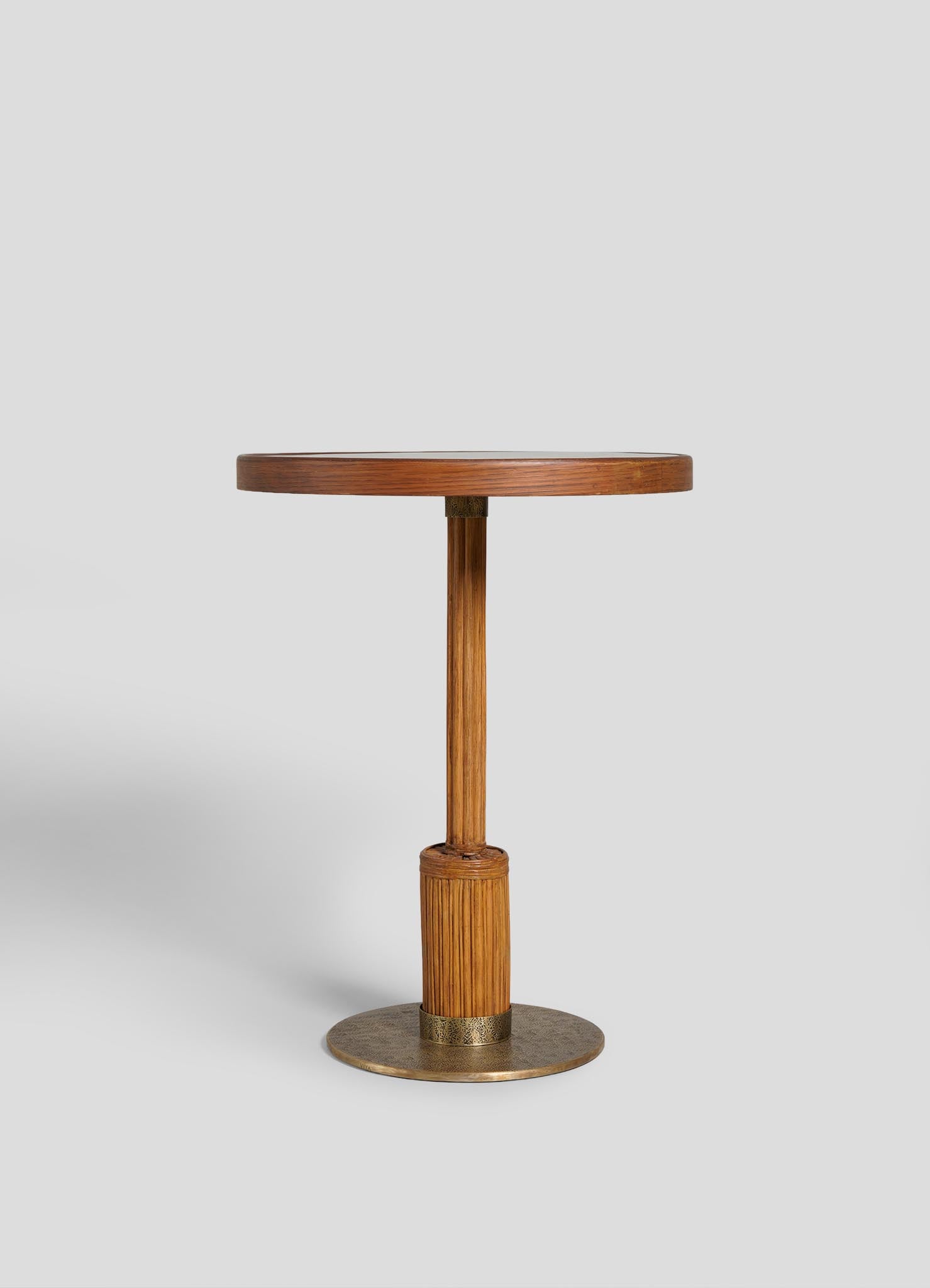 طاولة جانبية من النحاس مع حشوات شبه كريمة. مصنوعة يدويًا في الهند.