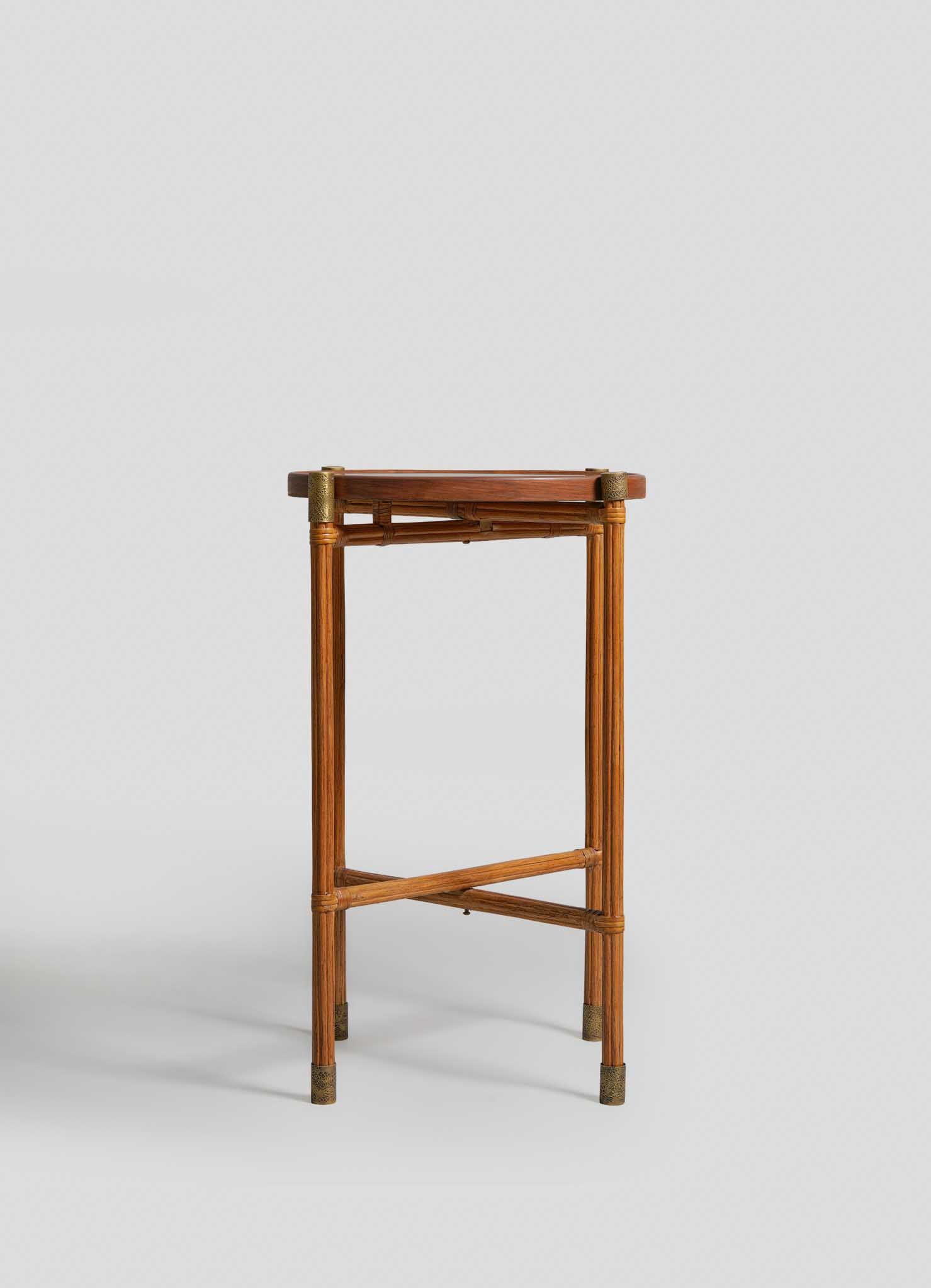 طاولة صينية من النحاس. مصنوعة يدويًا في الهند.