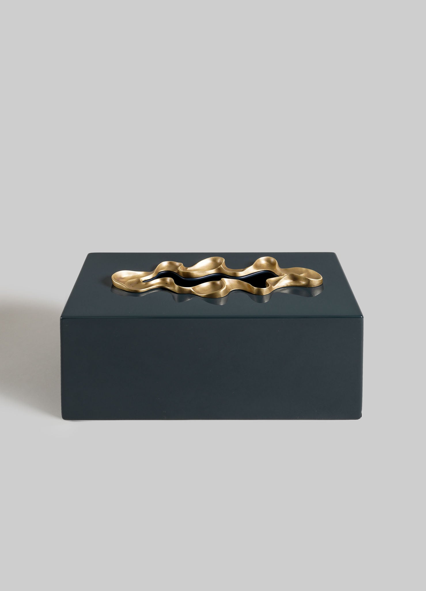 علبة مناديل مطلية بالورنيش والنحاس. صنع يدويًا في الهند.