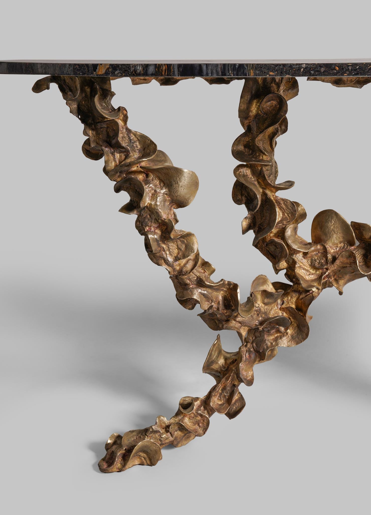 كونسول من النحاس مع طبقة شبه كريمة في الأعلى. مصنوع يدويًا في الهند.