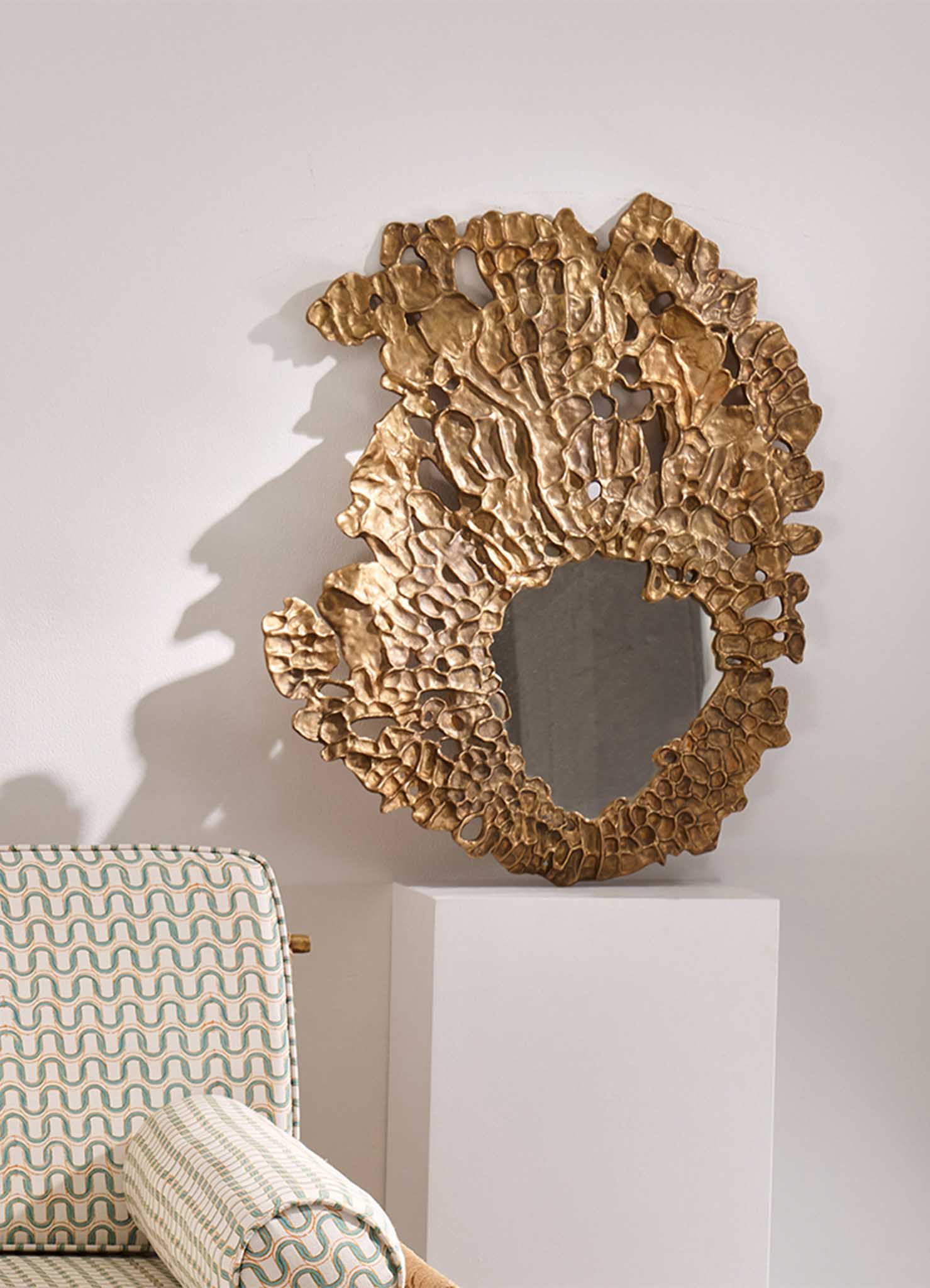 مرآة من النحاس. مصنوعة يدويًا في الهند.