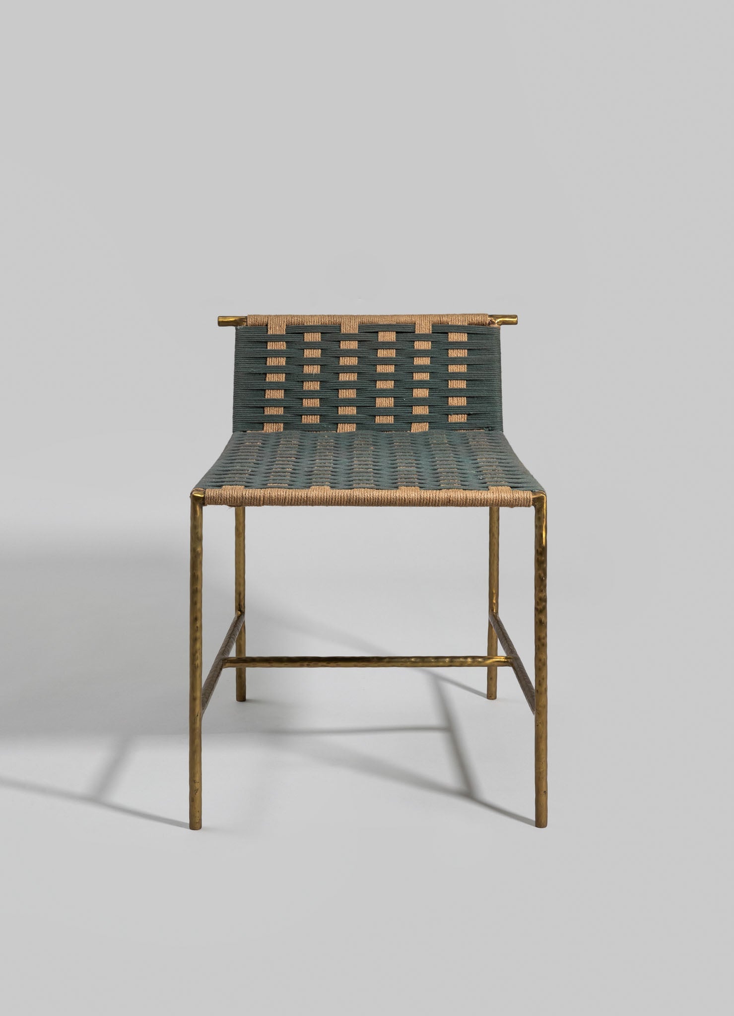 كرسي من النحاس وحبل الجوت. مصنوع يدويًا في الهند.