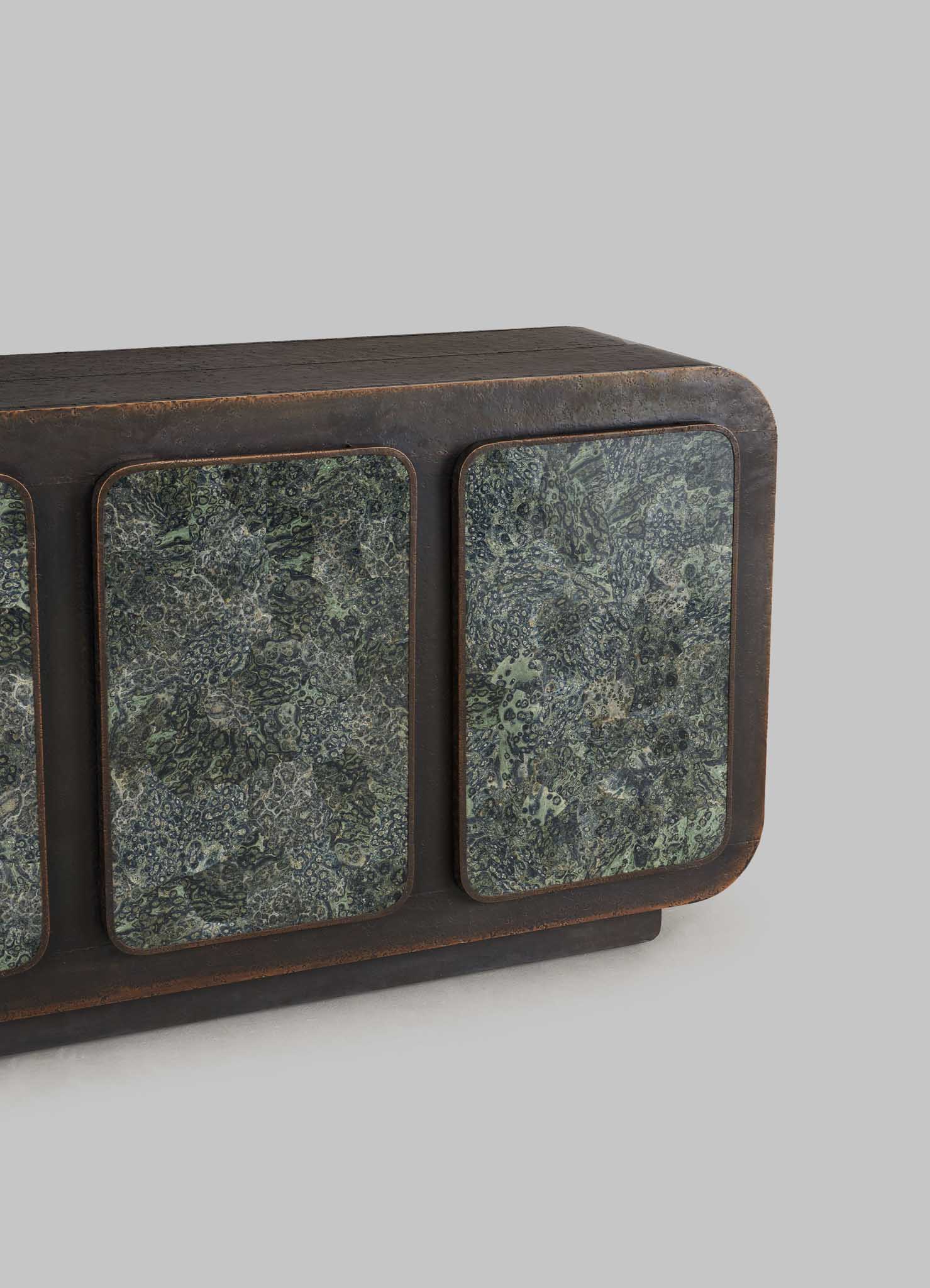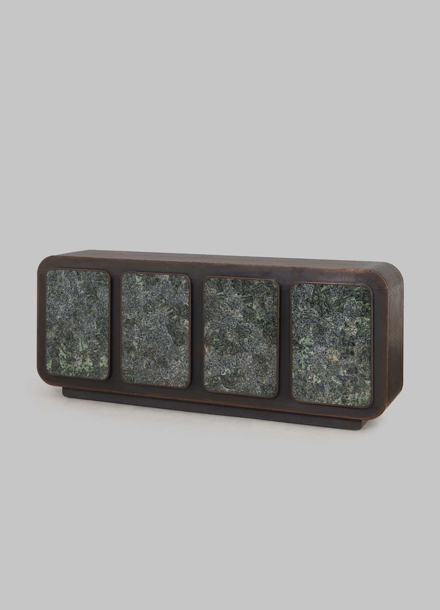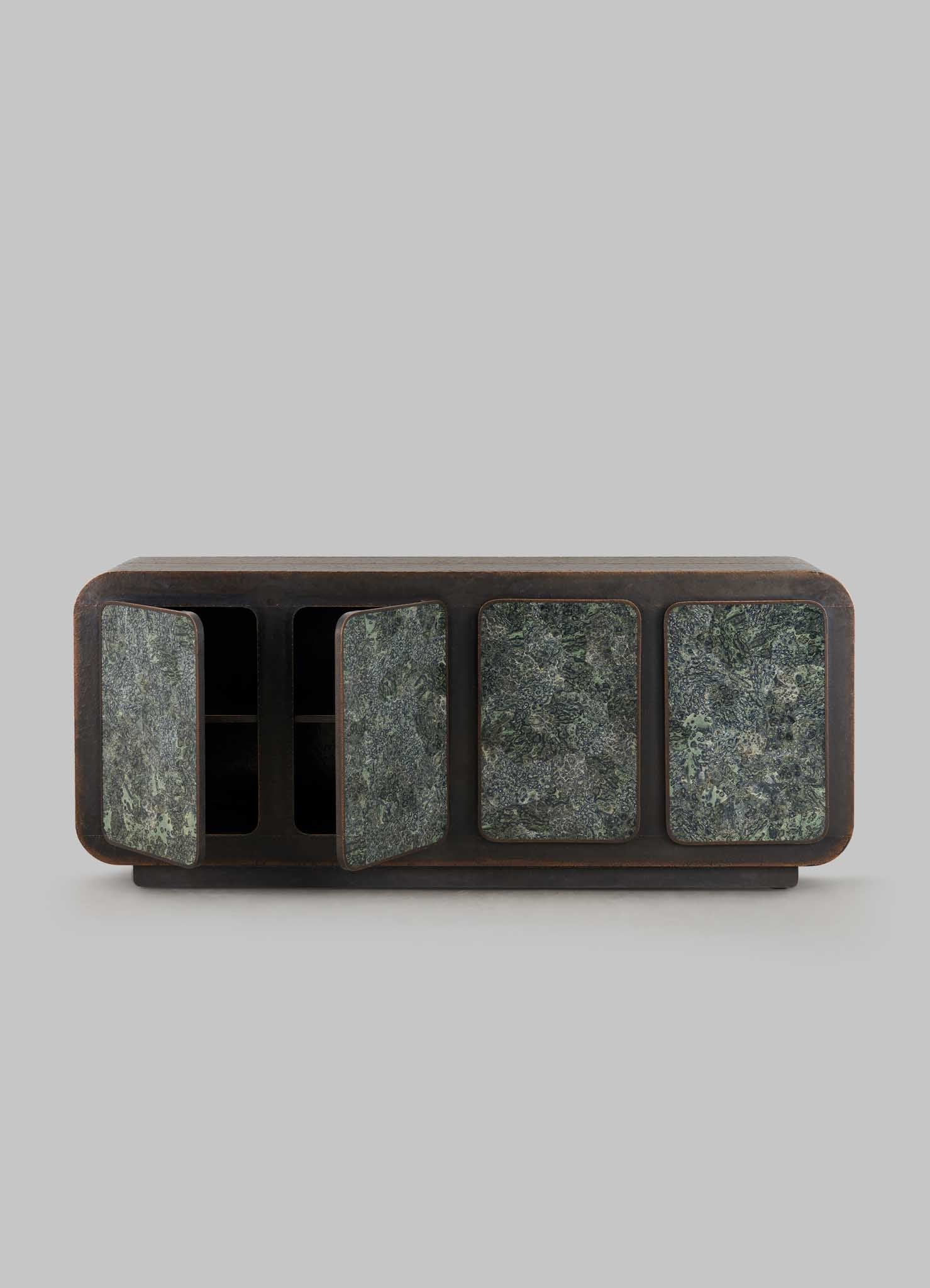 خزانة من النحاس مع حشوات شبه ثمينة. مصنوعة يدويًا في الهند.