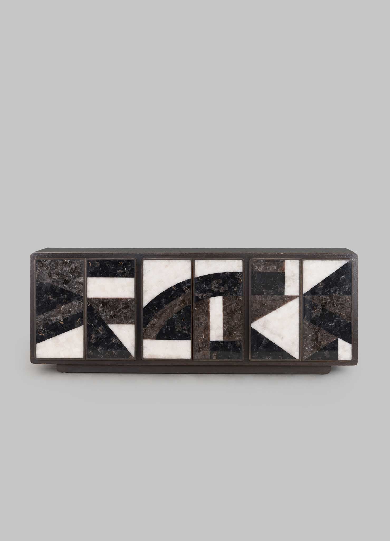 - الترصيع: بورتورو أسود، كوارتز رمادي، عرق اللؤلؤ الأبيض