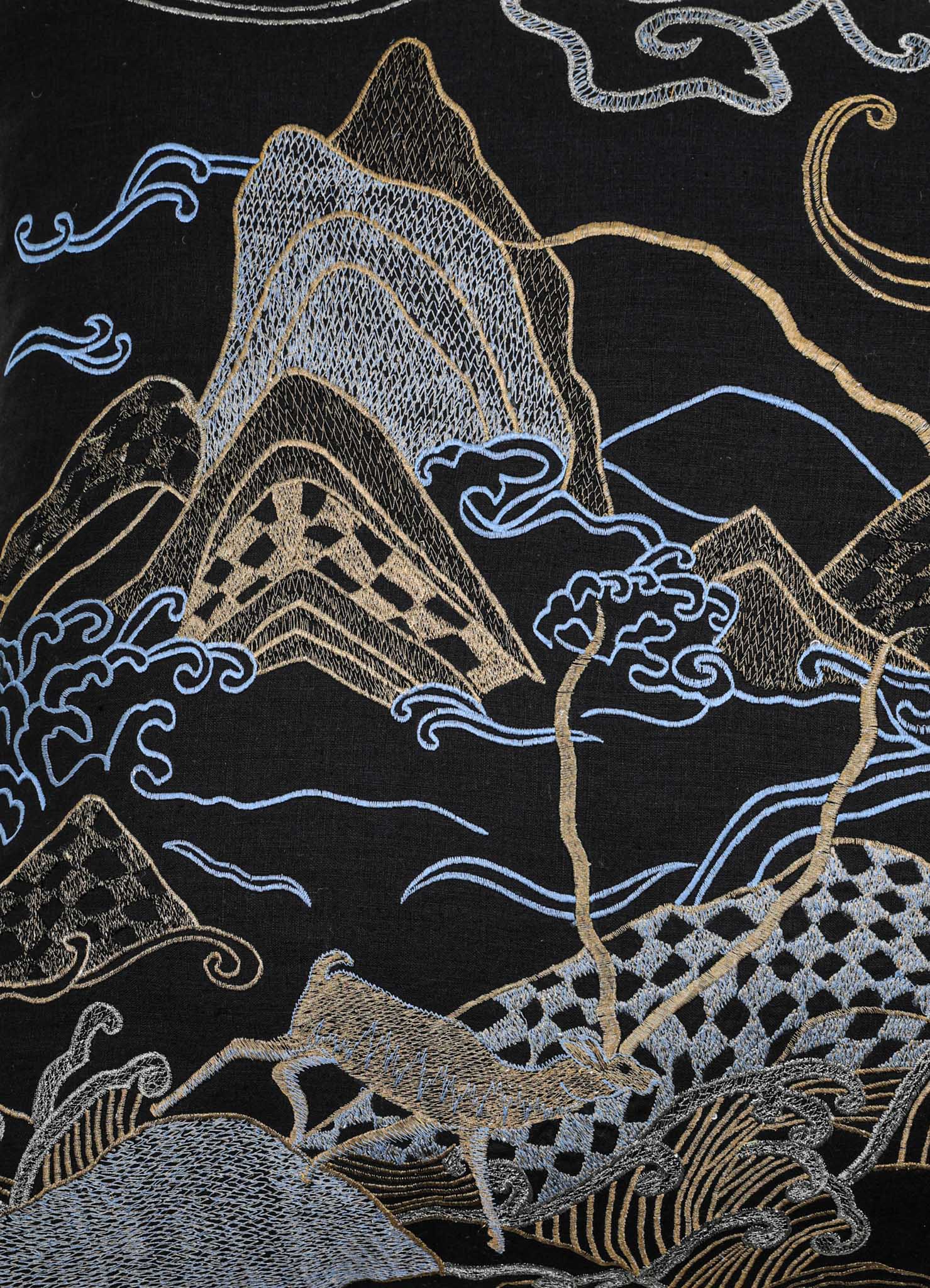 غطاء وسادة من الكتان مطرز باللونين الأسود والذهبي من دريم سكيب بلاكباك 24"x24"