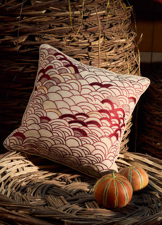 Dreamscape Red Embroidered Cushion Cover A 24"x24"