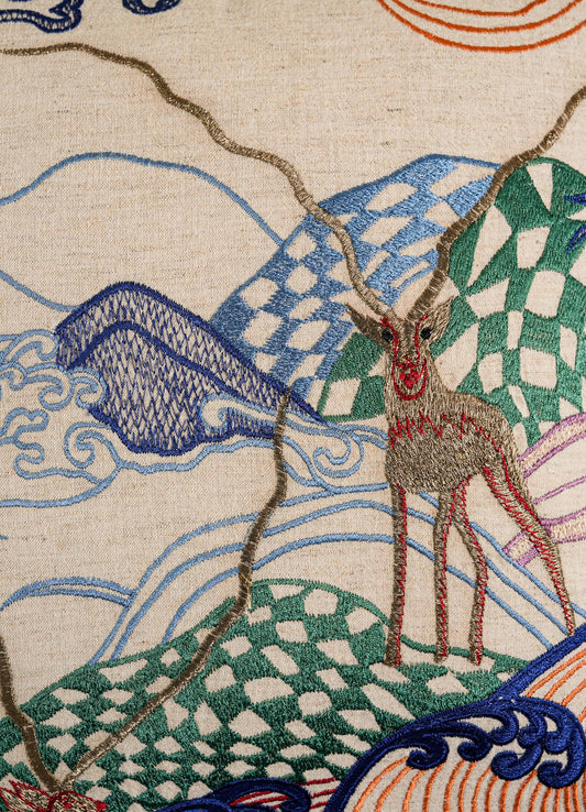 Dreamscape Blackbuck Multicolour Embroidered Cushion Cover 16"x16"