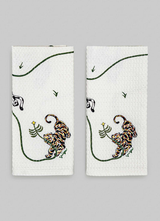 Lounging Tiger Hand Towels - Set of 2