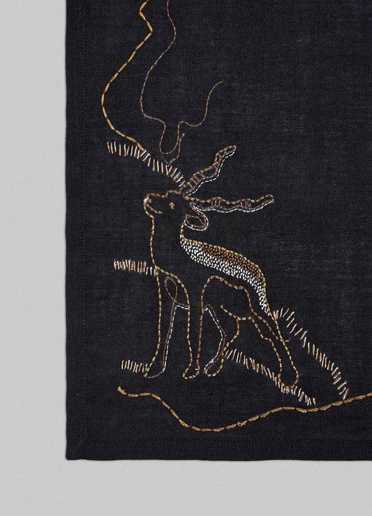 Blackbuck Dreams Hand Embroidered Black & Gold Placemat