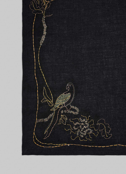 Tree Full of Parrots Hand Embroidered Black & Gold Placemat