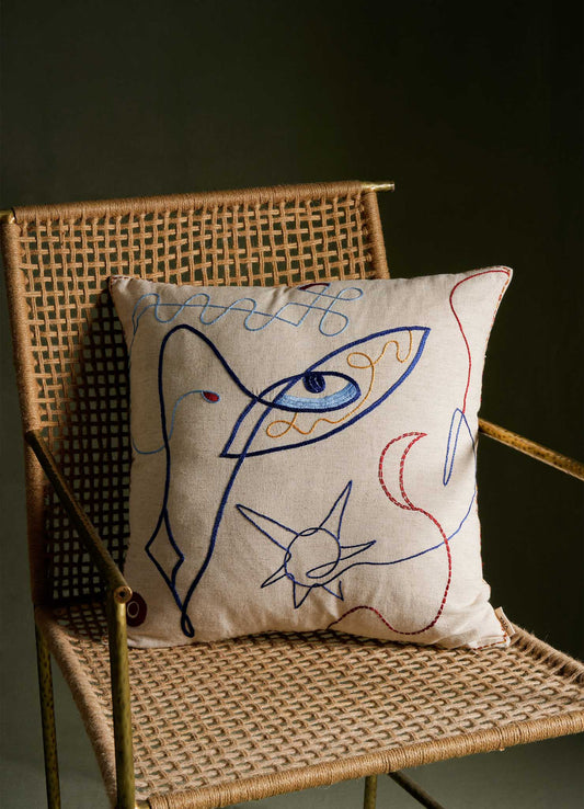 Evil Eye Ecru Hand Embroidered Cushion Cover 18"x18"
