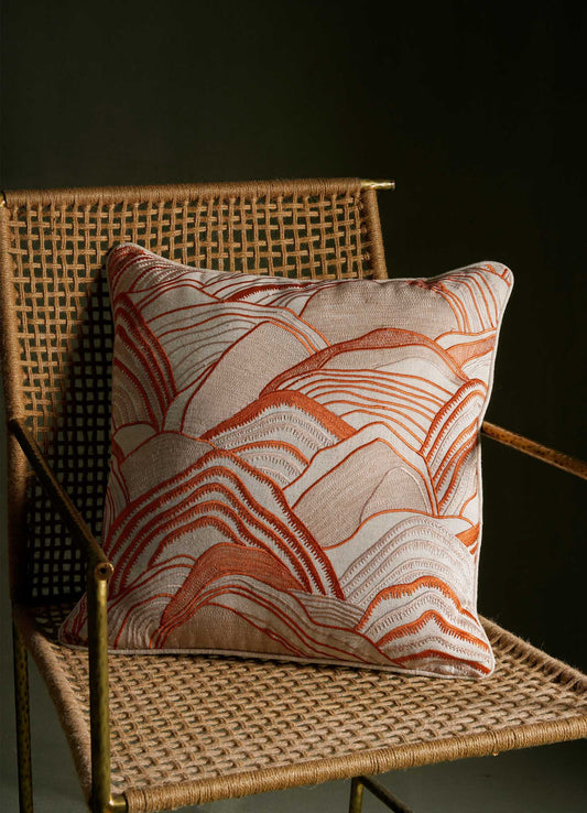 Dreamscape Orange Embroidered Mounds Cushion Cover 18"x18"