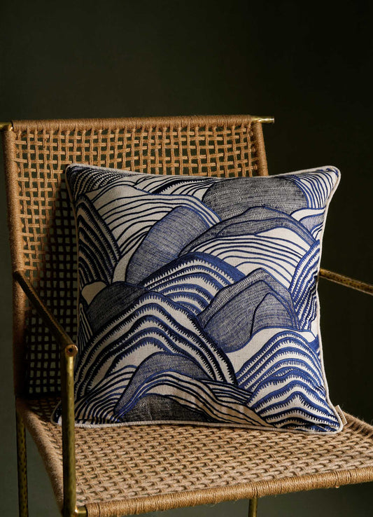 Dreamscape Blue Embroidered Mounds Cushion Cover 18"x18"