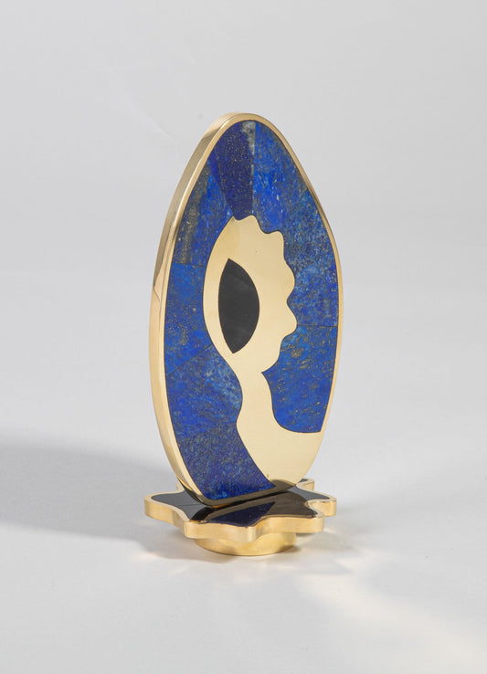 Elevate your living space with Viya's sculptural bookends—polished brass and lapis-lazuli blue accents for modern, luxurious decor.