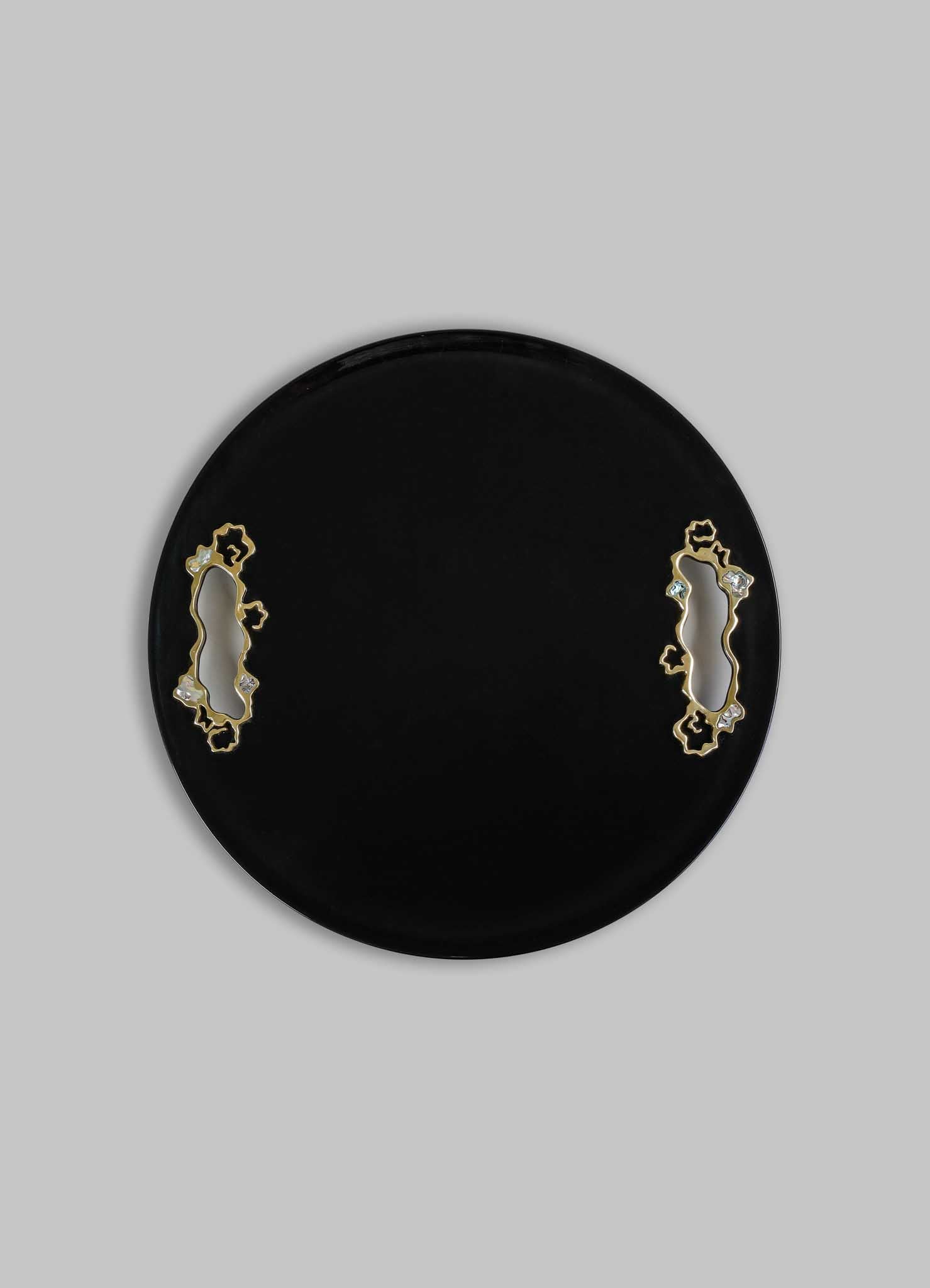 Ya sea por los densos e intrincados patrones de nubes en las paredes del Badal Mahal, Rajasthan, o por el brillo de los cielos tormentosos nocturnos en las pinturas miniatura Pahadi, la gracia y el misterio de las nubes siempre nos han intrigado hasta el punto de inspirarnos. Inspirándonos en estos cuerpos efímeros, mediadores entre el cielo y la tierra, nuestra colección Baadal representa nubes mediante elementos de latón fundido incrustados con piedras semipreciosas, empleando la técnica pietra dura sobre una superficie negra profunda.