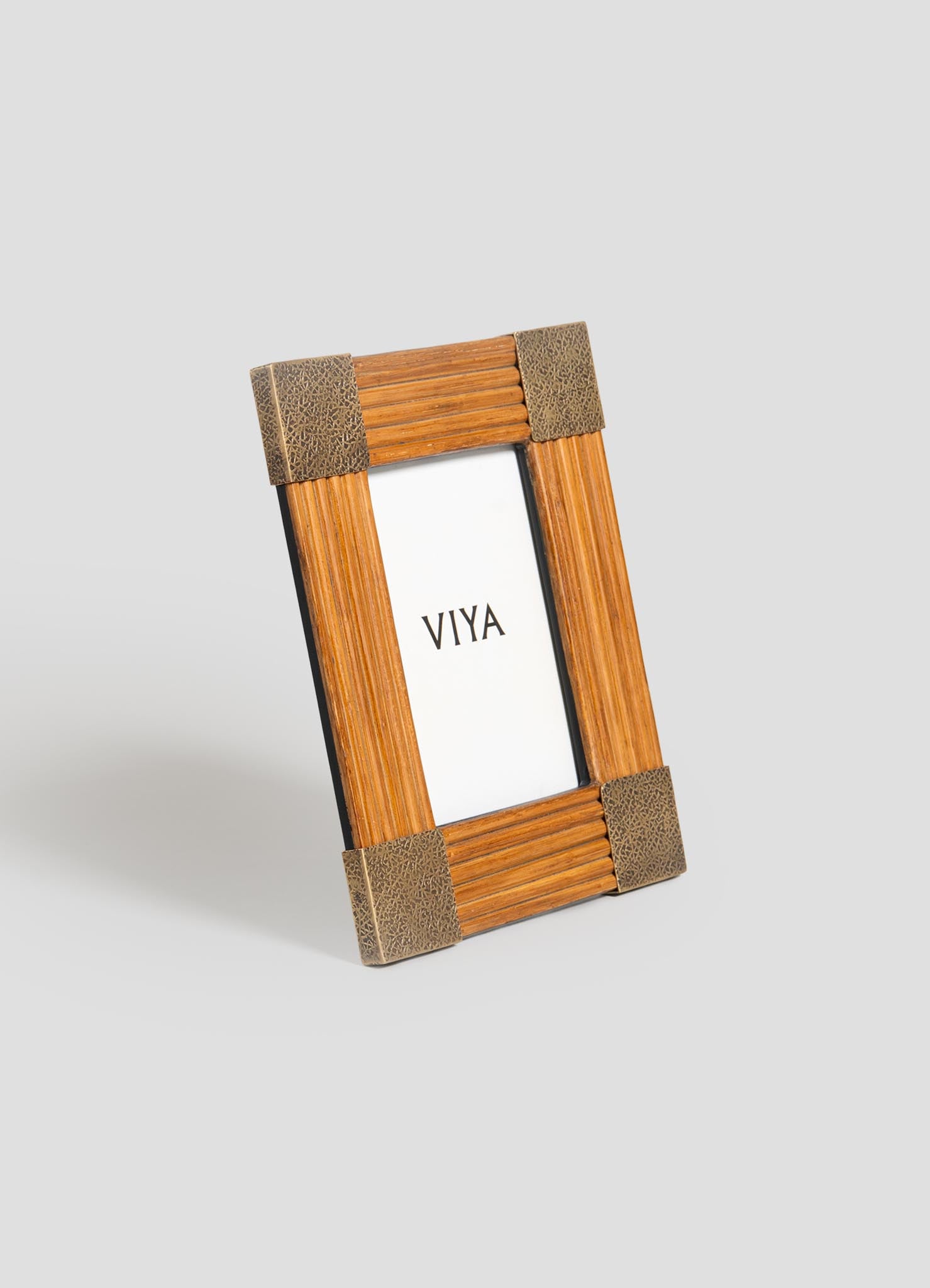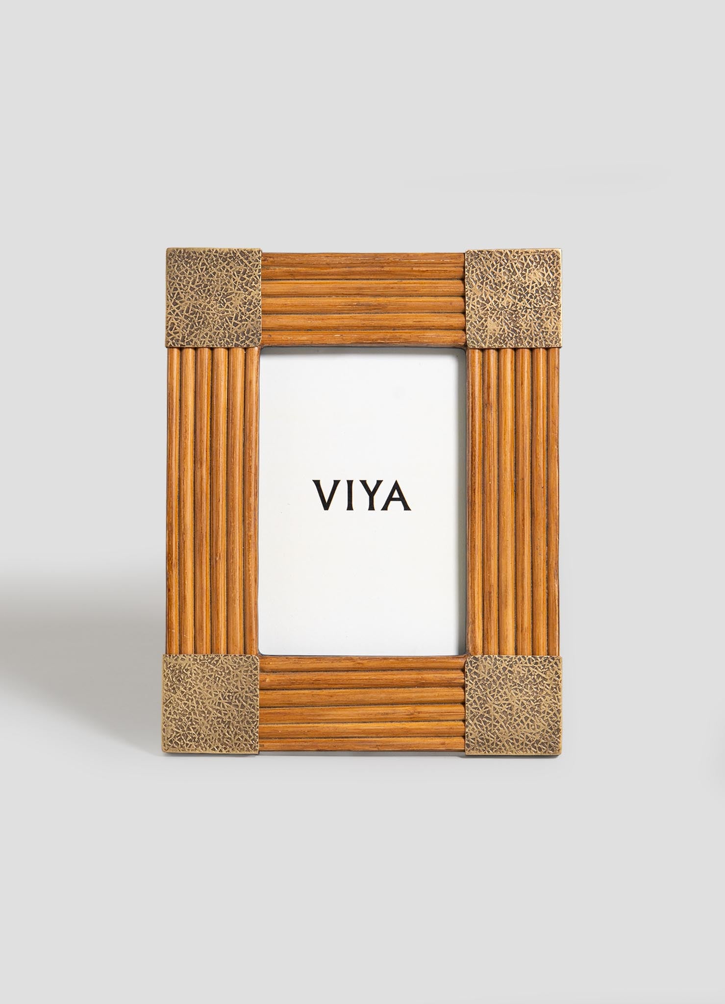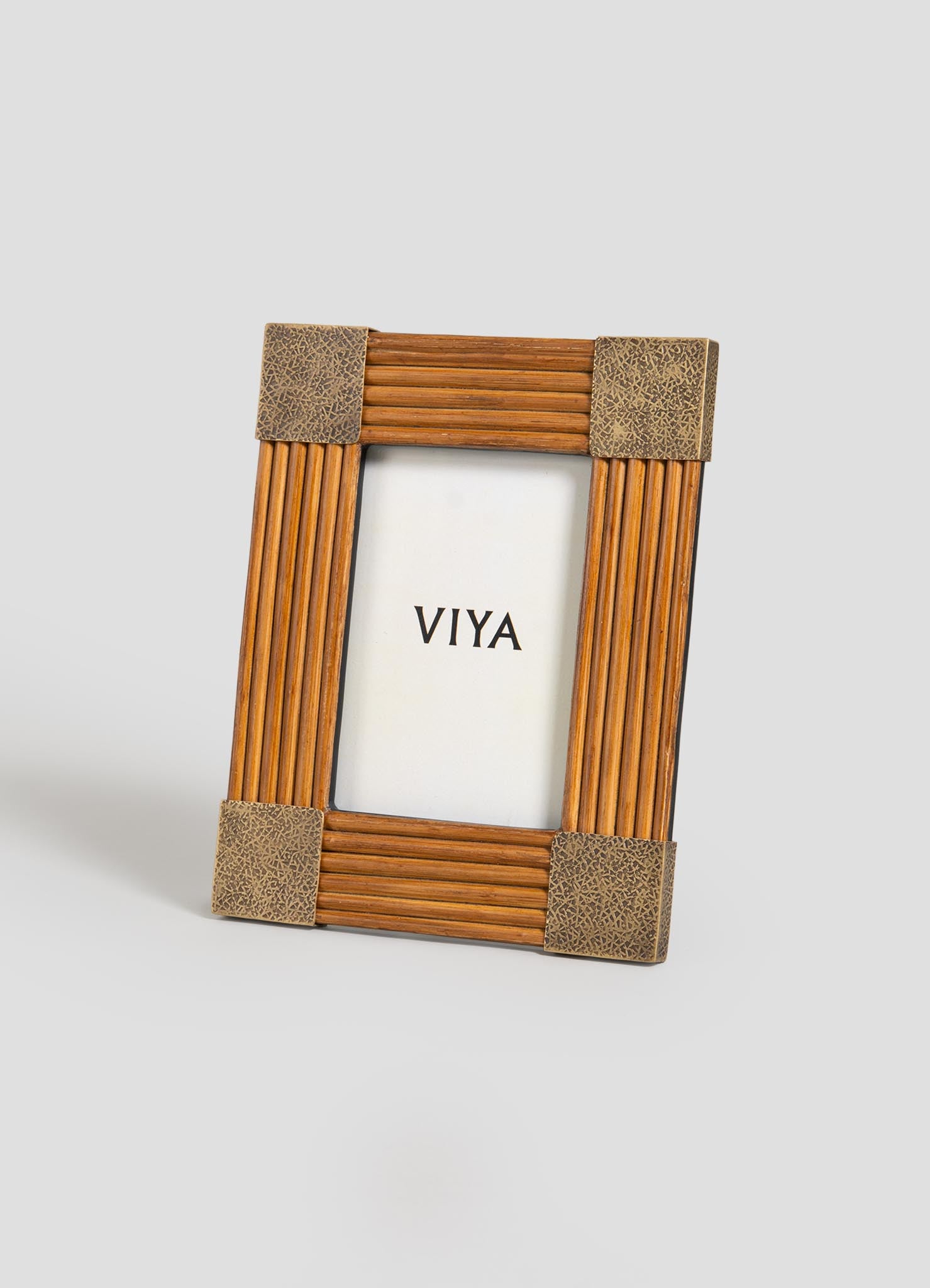 Photo frame in cane with brass. Handmade in India.
