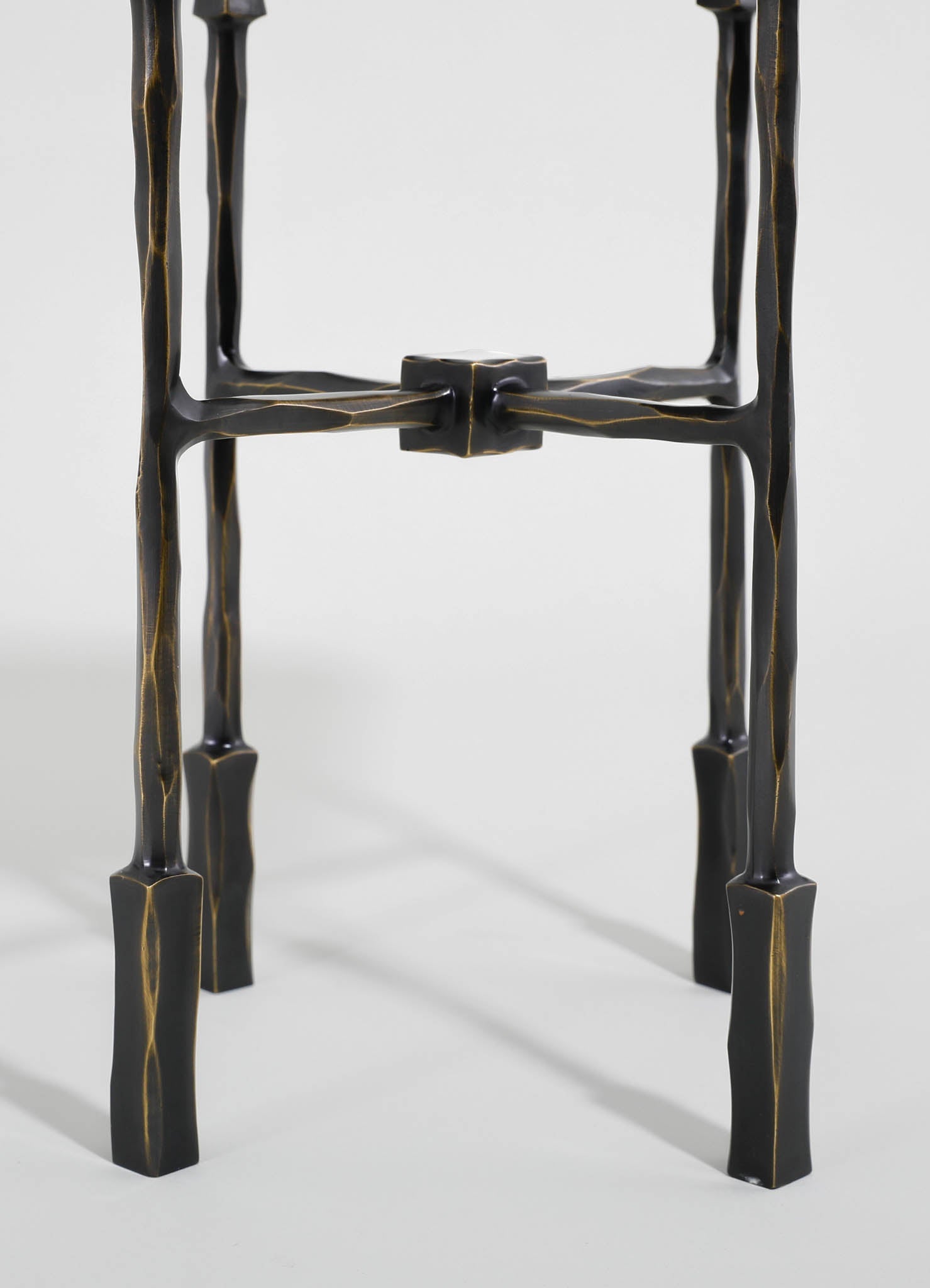 Mesa auxiliar de latón con tapa superpuesta de piedras semipreciosas. Hecho a mano en India.