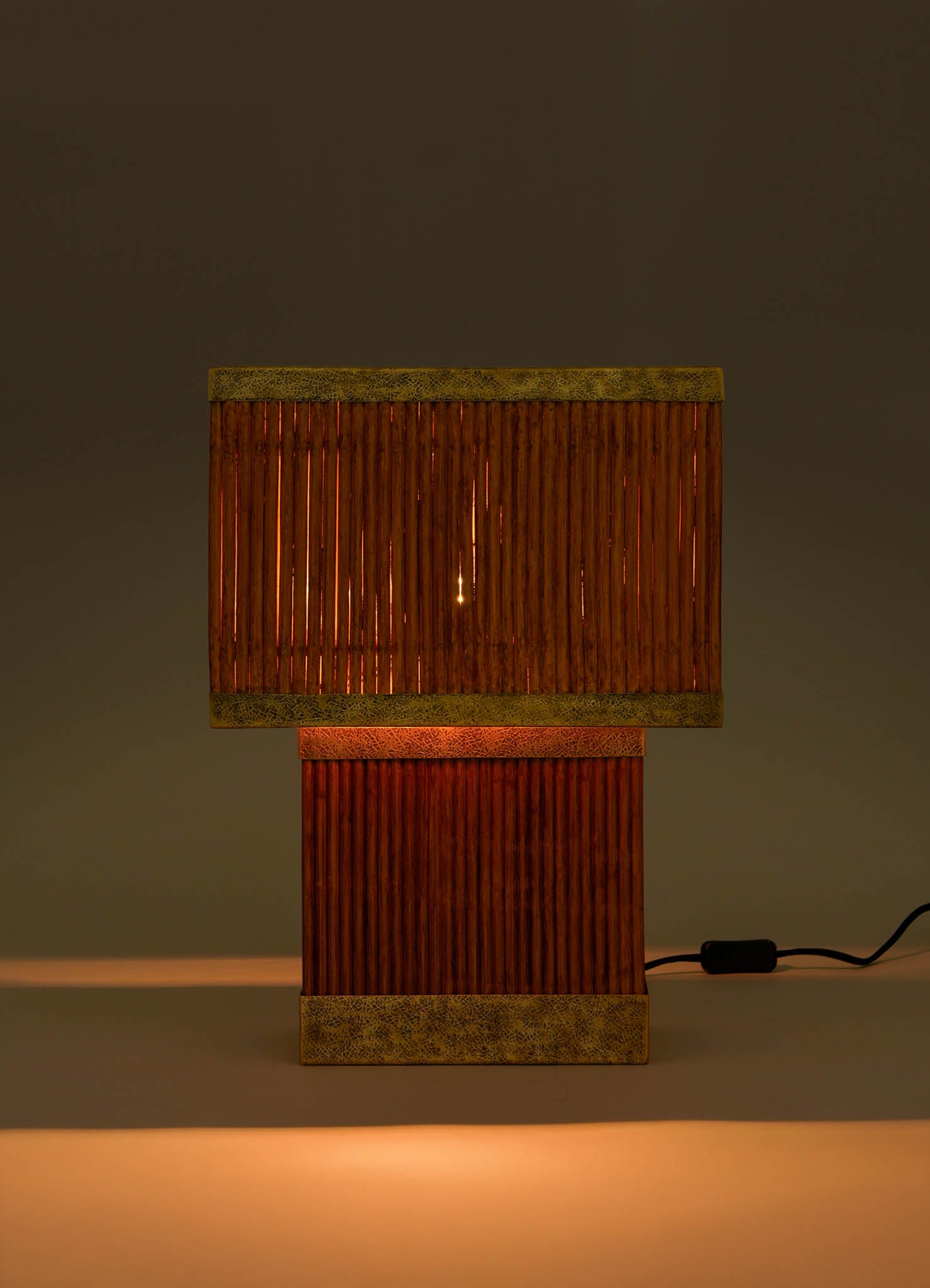 Table lamp in brass with handwoven cane lamp shade. Handmade in India.