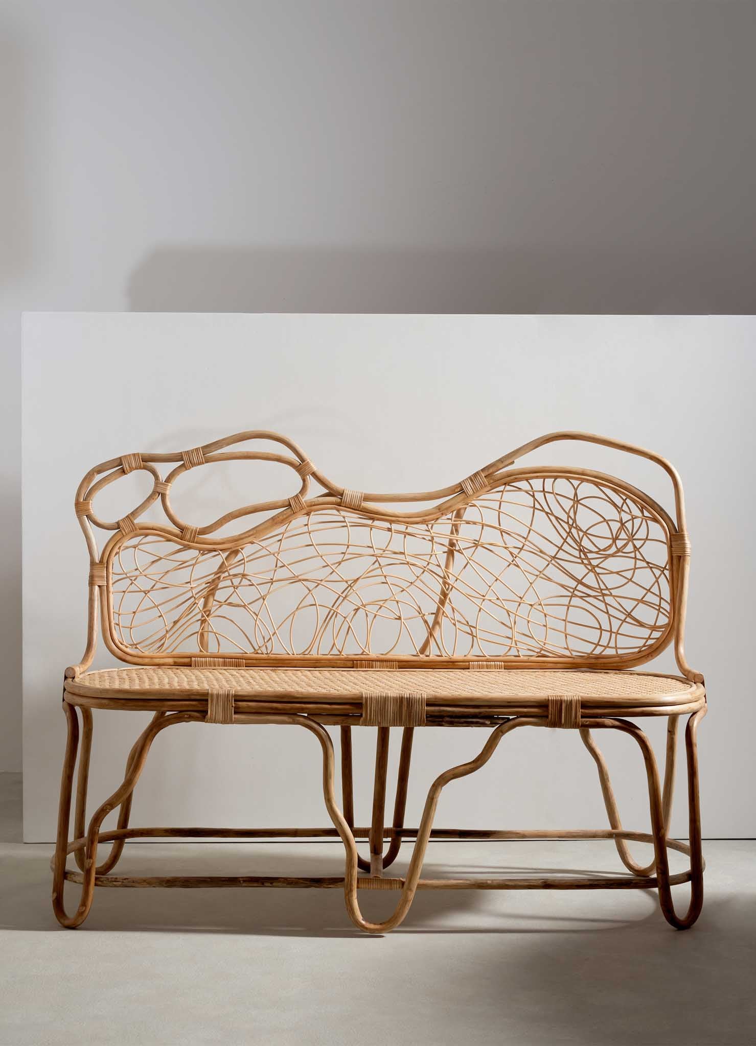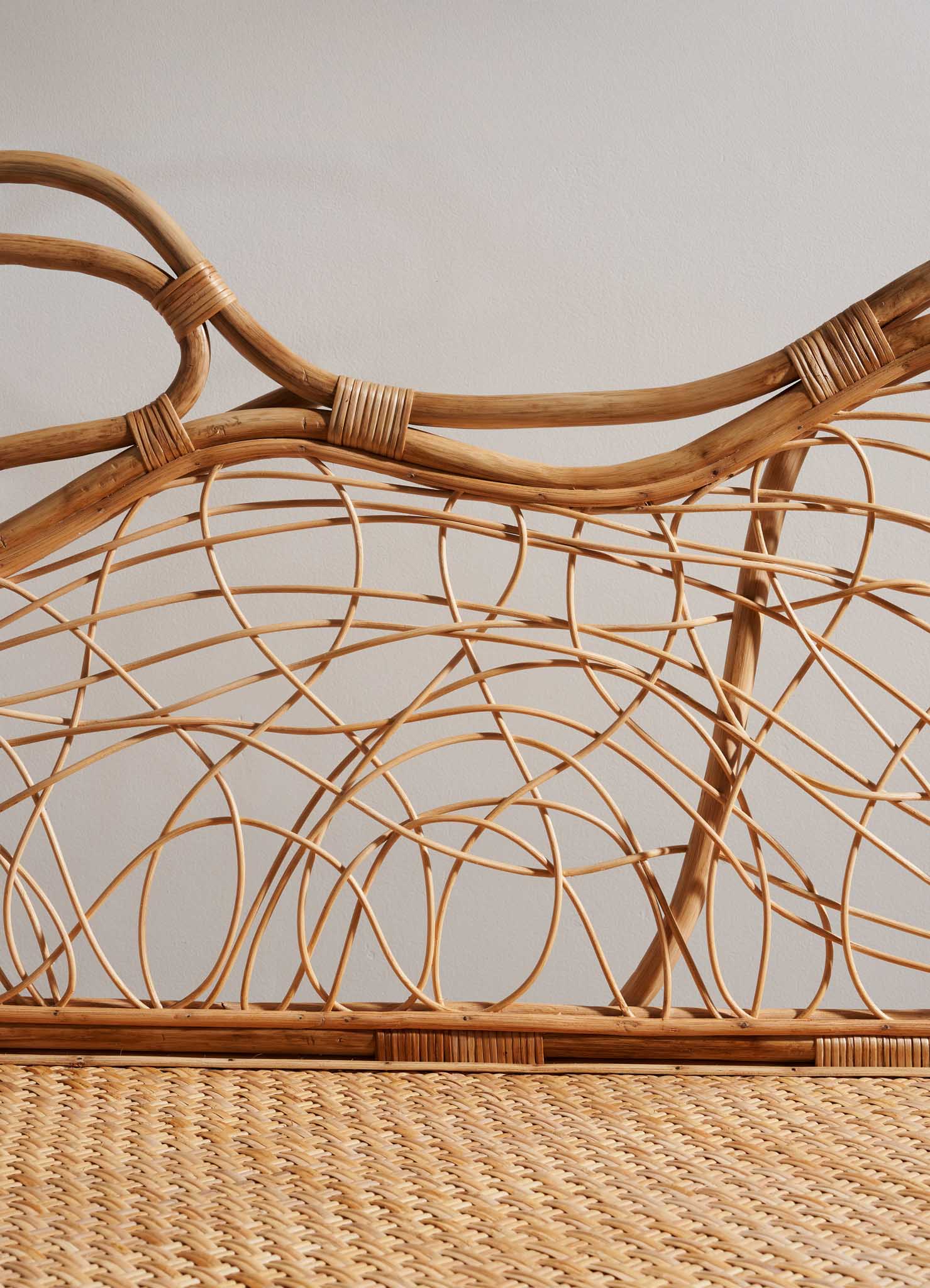Rien n'est peut-être plus captivant que la métamorphose incessante de la nature, qui persiste dans une transformation gracieuse même au-delà des limites de la vie. Dans ce rituel enchanteur, intimement lié à l'Inde et à son artisanat artisanal, la canne est délicatement décollée de l'écorce du rotin, baignée dans l'eau, puis habilement tressée et nouée pour former des créations éthérées. Le résultat, léger comme une plume et résistant, fait référence aux chakras, ces points d'énergie circulaires qui libèrent l'harmonie du corps et de l'esprit.