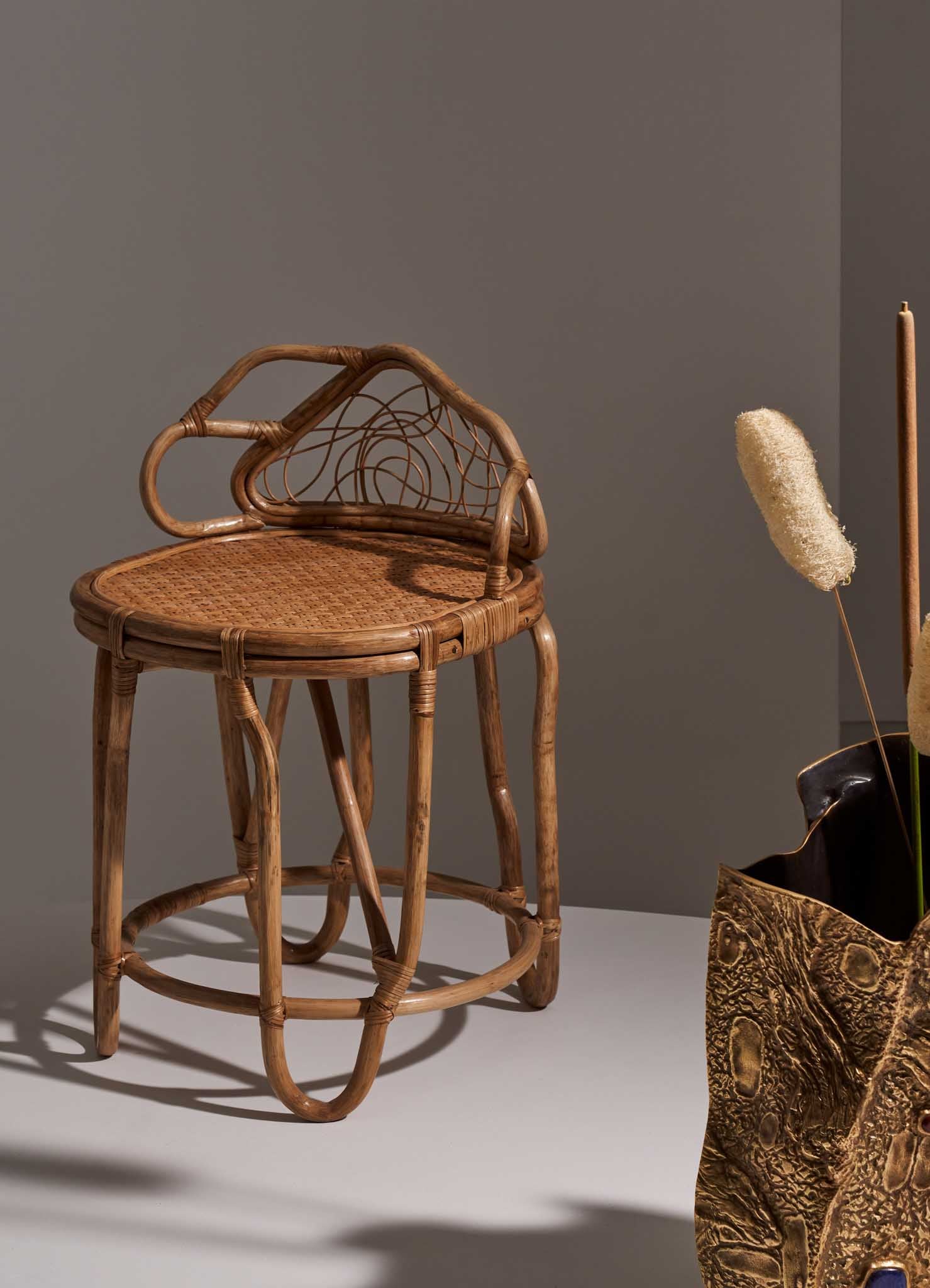 Forse nulla è più affascinante della metamorfosi duratura della natura, che persiste in una trasformazione elegante anche oltre i confini della vita. In questo incantevole rituale - intimamente legato all'India e alle sue industrie artigianali - la canna viene delicatamente sbucciata dalla corteccia della pianta di rattan, immersa nell'acqua e abilmente intrecciata e annodata in creazioni eteree. Il risultato è leggero come una piuma, resistente e richiama il chakra, punti di energia circolari che sbloccano un'armonia tra mente, corpo e spirito.