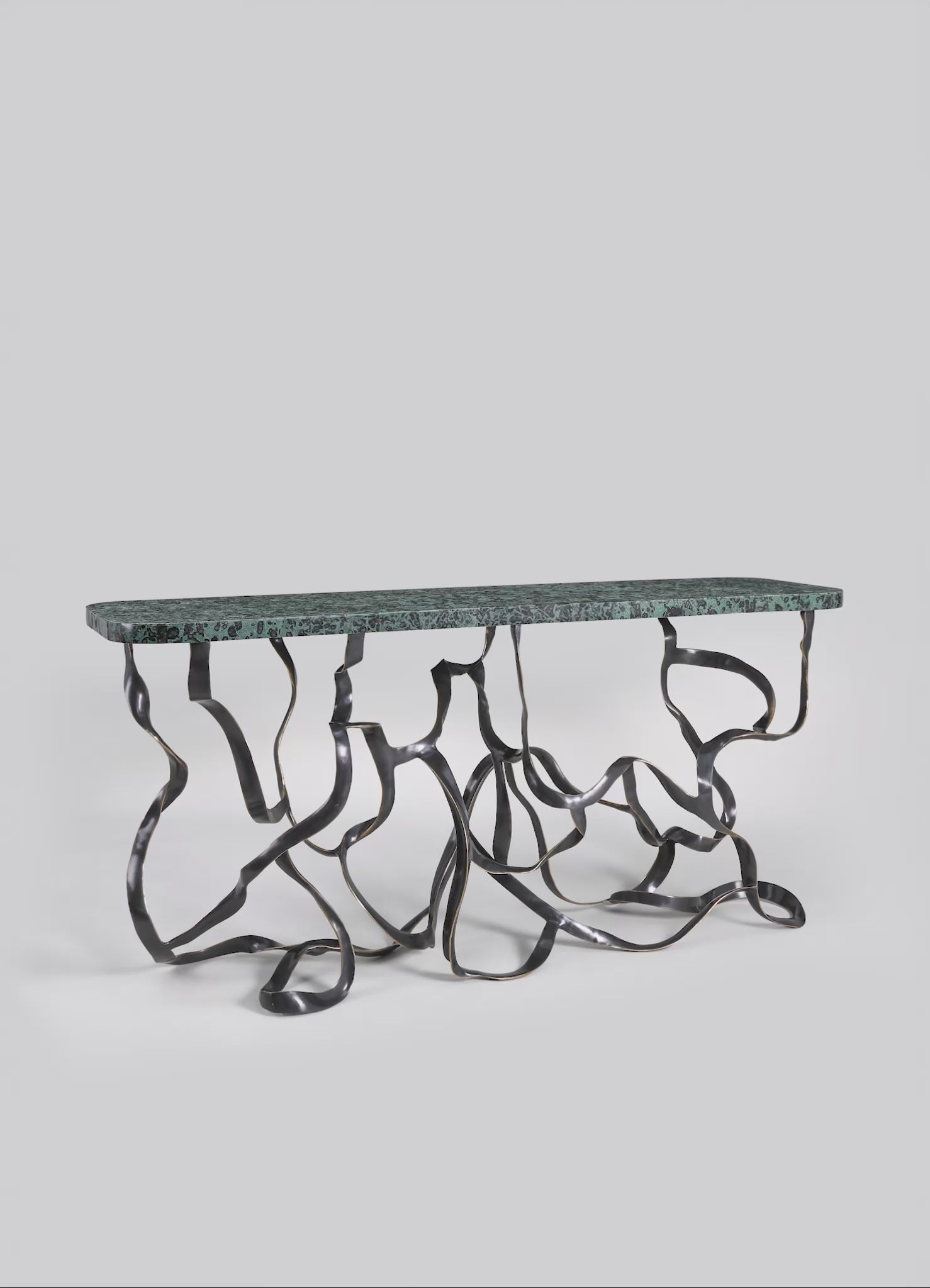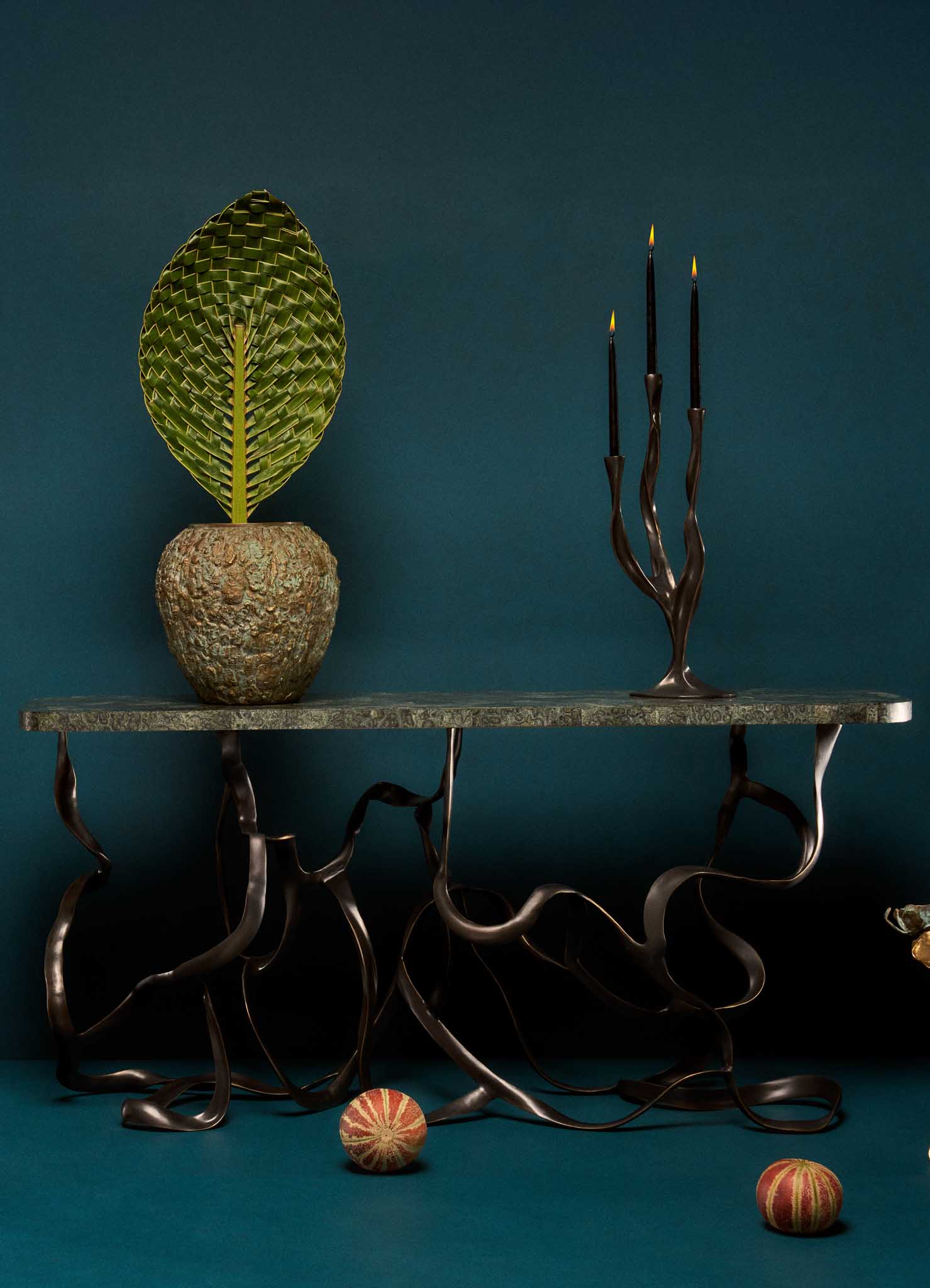 The Blackbuck is an animal revered across cultures, and in India symbolic of purity and the divine. Our collection of cast brass objects manifest some of these traits; the dark graceful twisting forms, inspired by its antlers, swirl and flow with dynamic energy. Through their form, they capture the delicate balance of earthly virtue and celestial yearning.