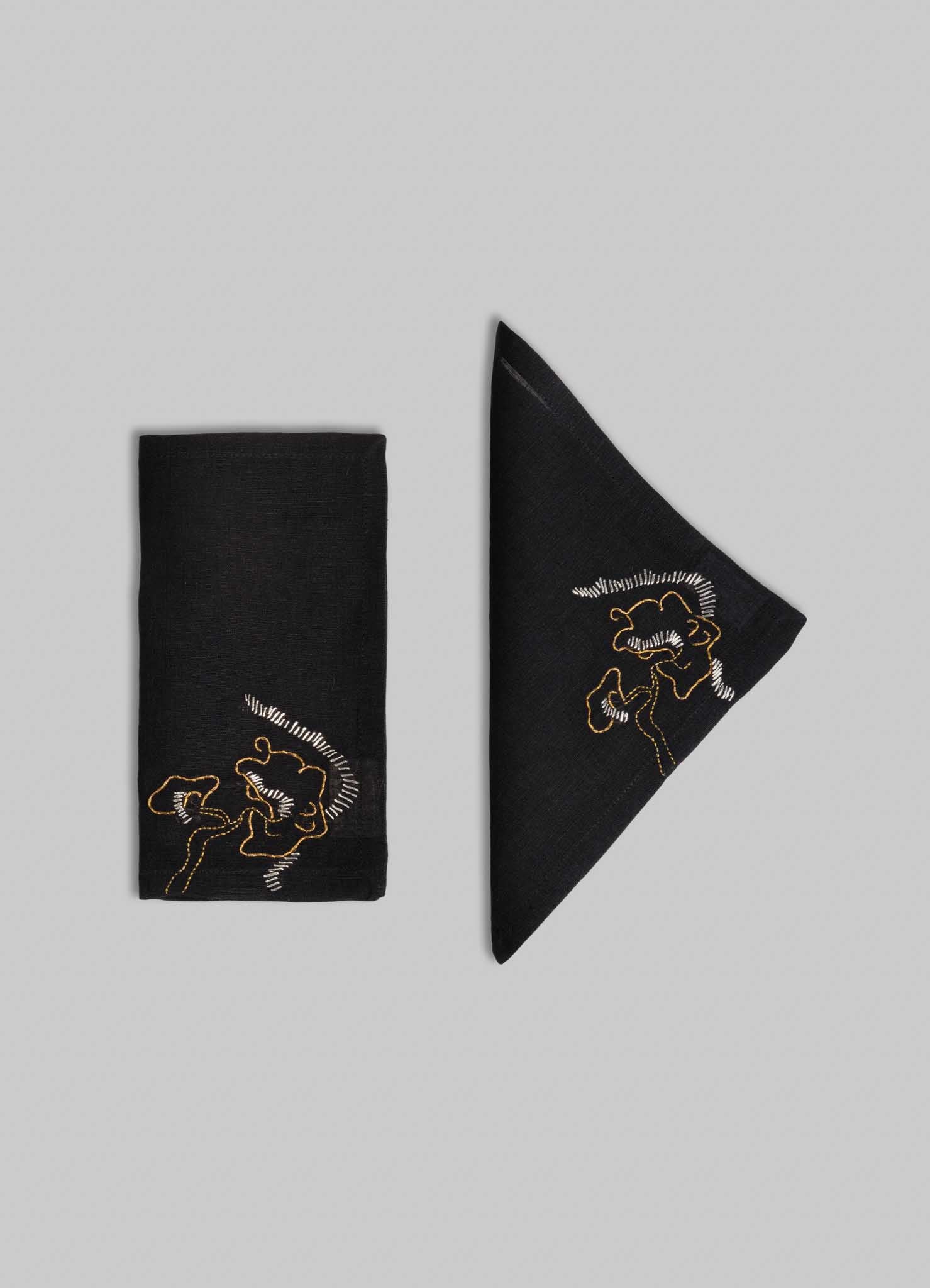 Blackbuck Dreams Hand Embroidered Black & Gold Cocktail Napkins