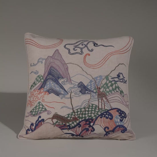 Dreamscape Blackbuck Multicolour Embroidered Cushion Cover 24"x24"