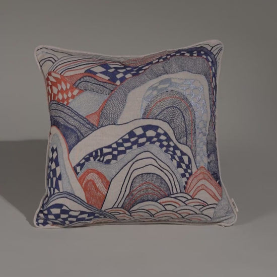 Dreamscape Blue Embroidered Cushion Cover 18"x18"