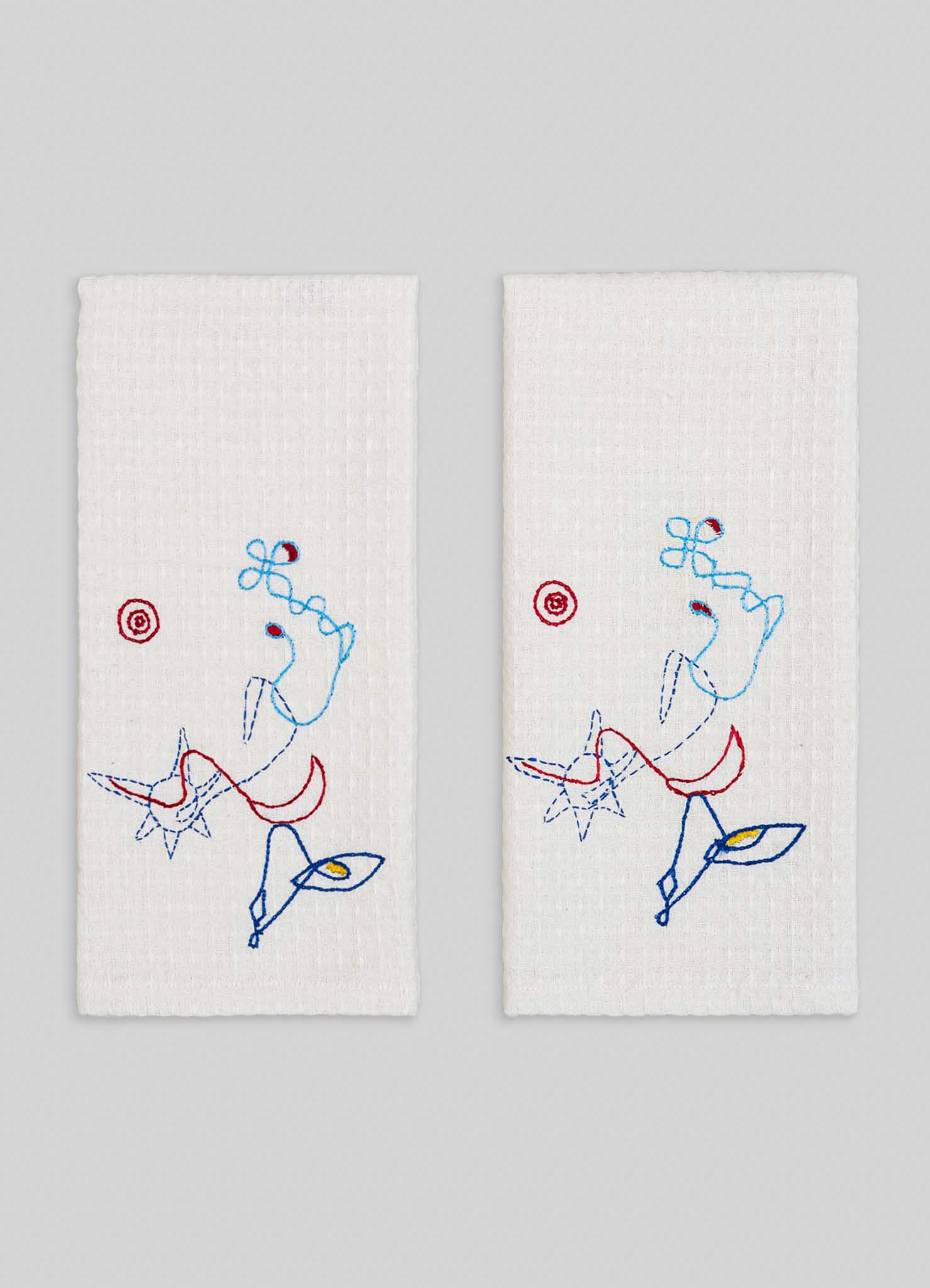 Printed & hand embroidered hand towels in cotton. Handmade in India.