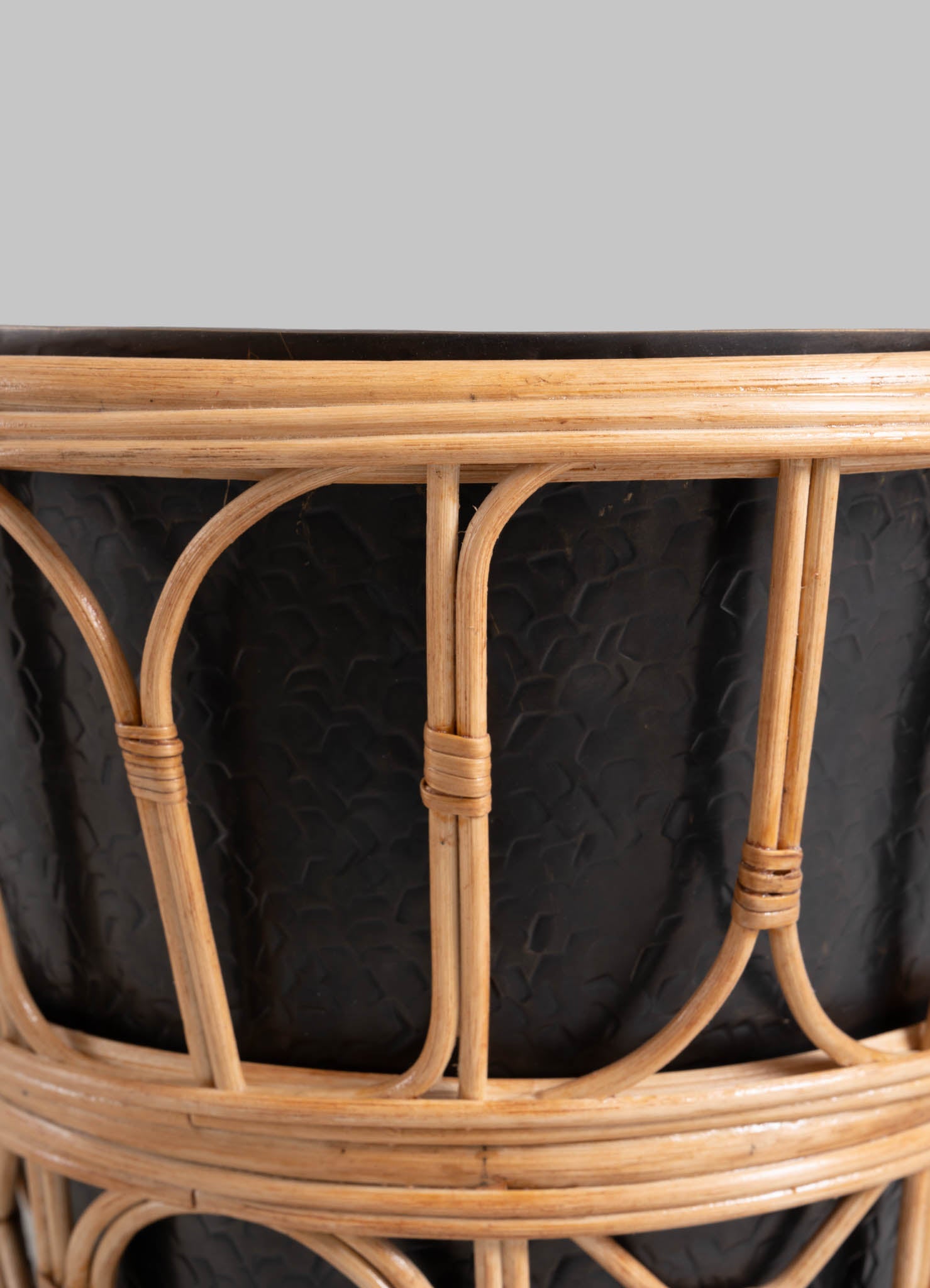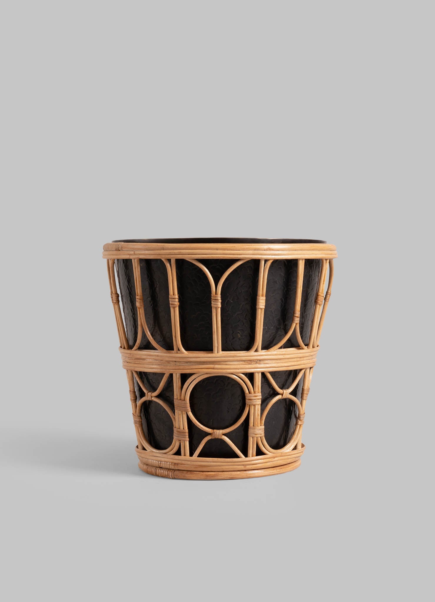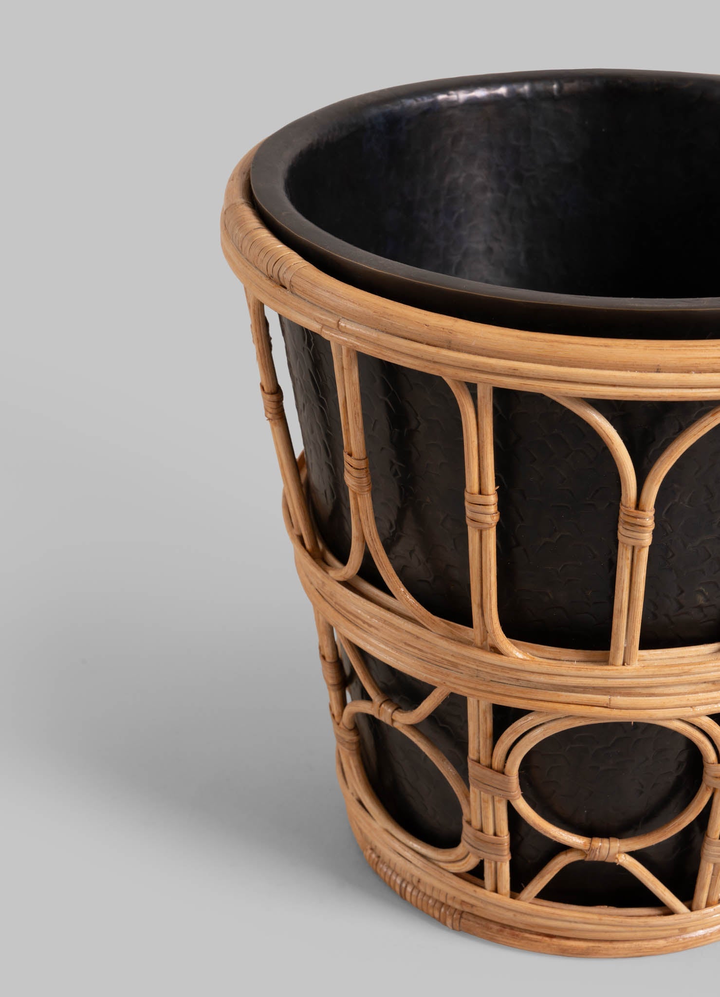 A classic pairing, reimagined. Robust cane becomes latticed second skin to the hand-beaten brass objects in an effortless collaboration. These barware accessories are crafted as perfect accompaniments to your bar or serve as versatile standalone objects for your home.