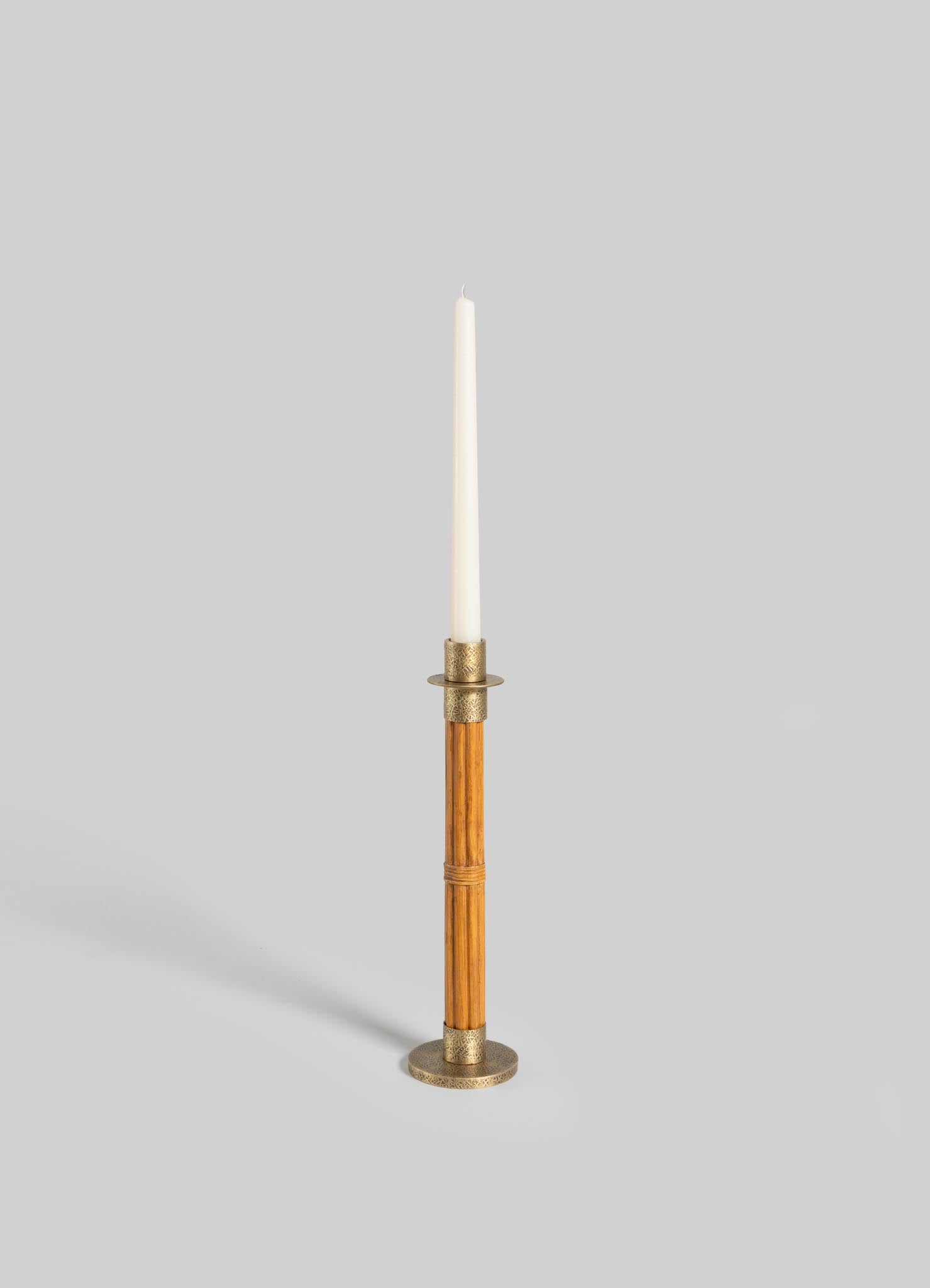 Candle Holder in brass & cane. Handmade in India.