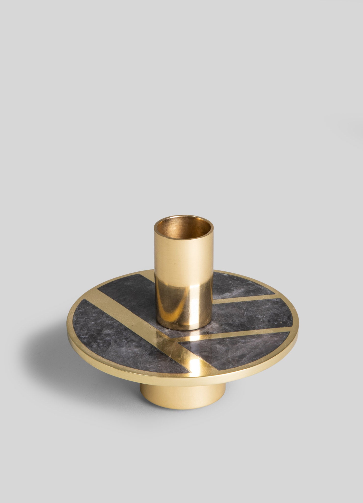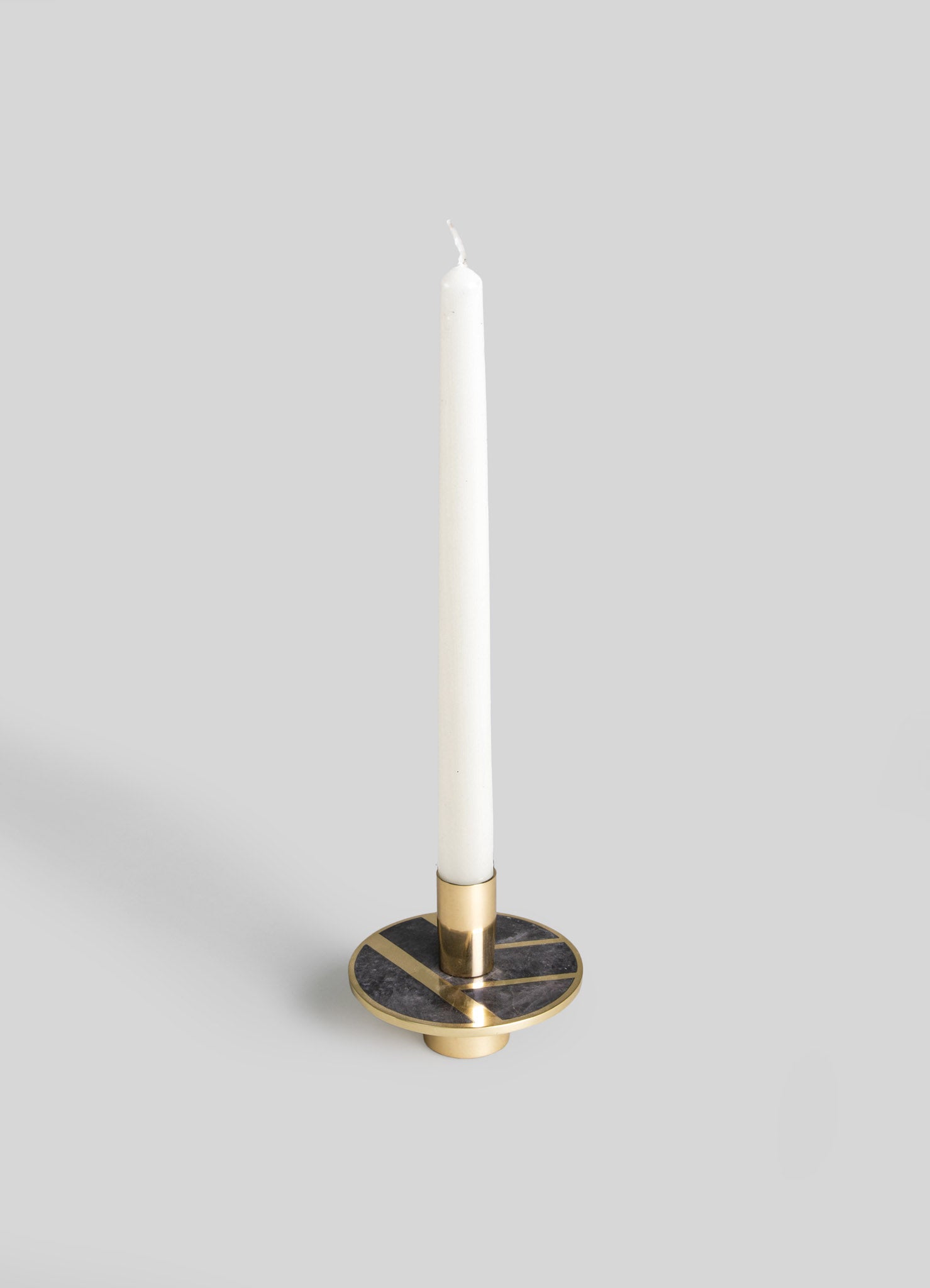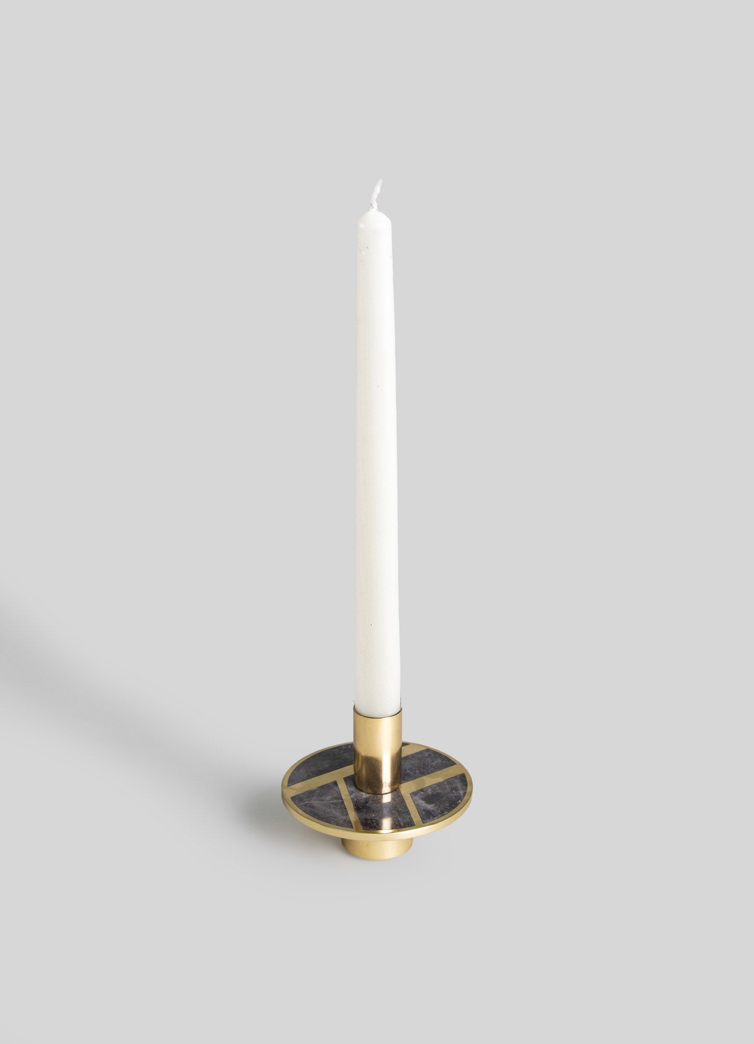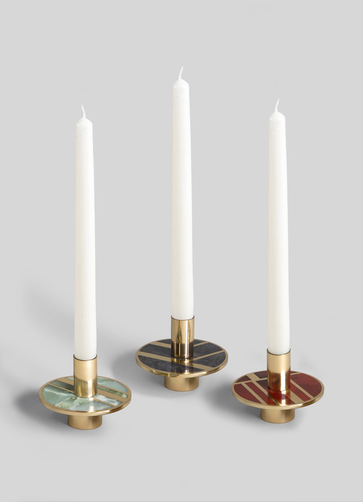 Candle Stand in brass with semi precious inserts. Handmade in India.
