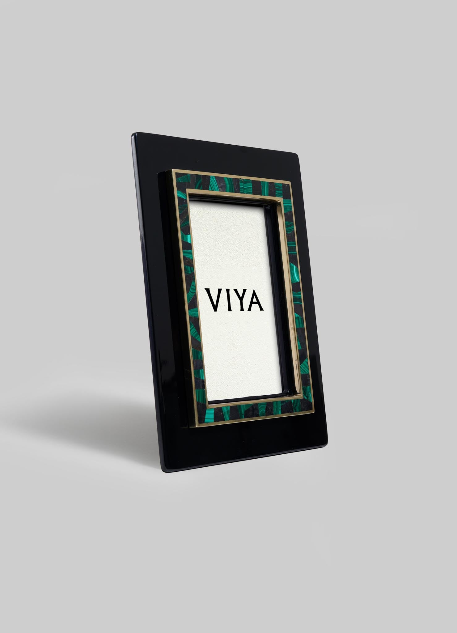 Photo frame in lacquered wood with semi precious inserts. Handmade in India.