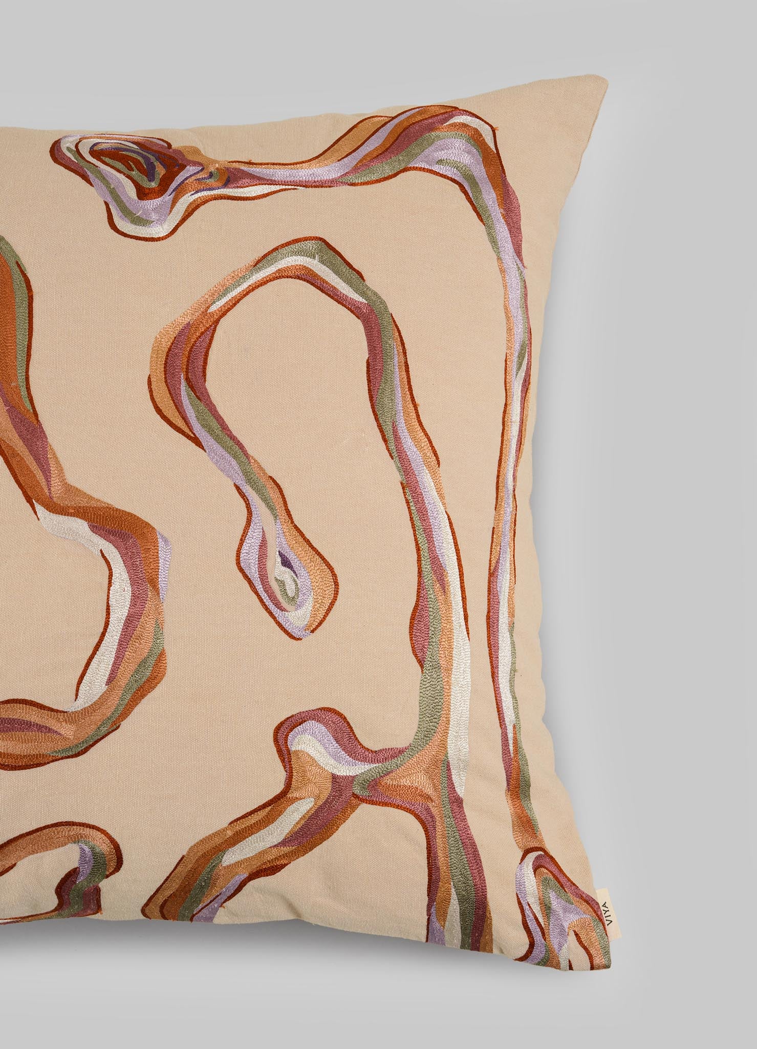 Hand embroidered cushion cover in cotton. Handmade in India.